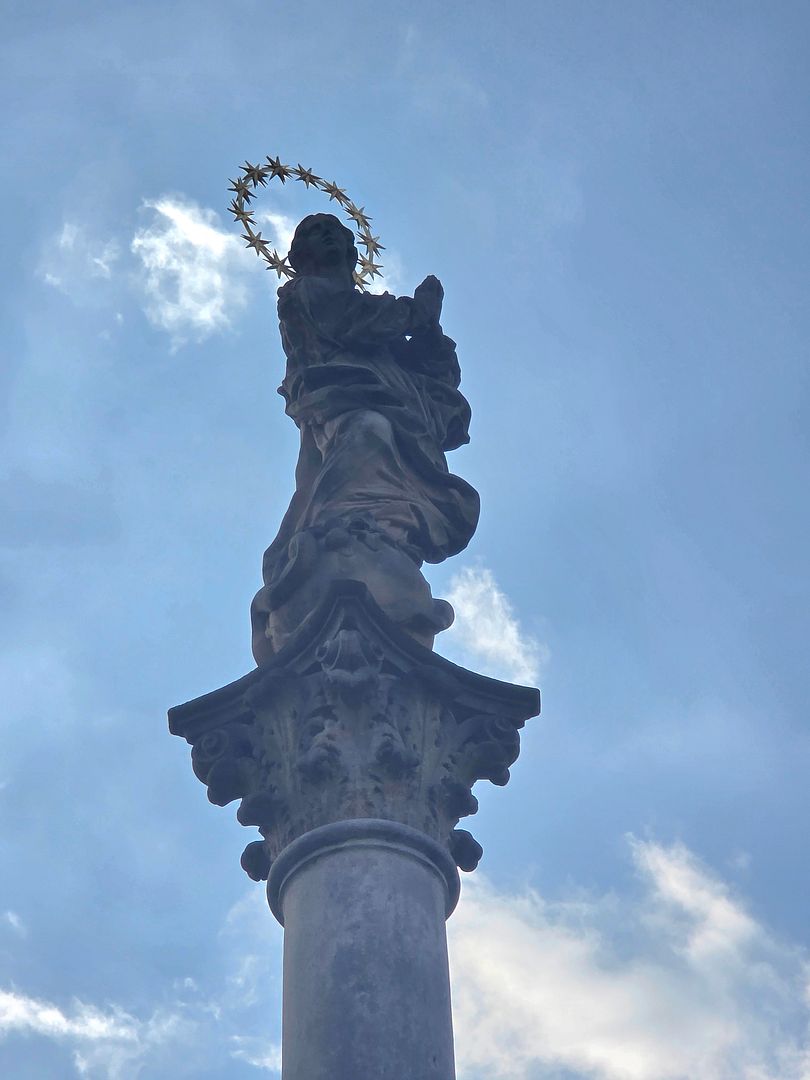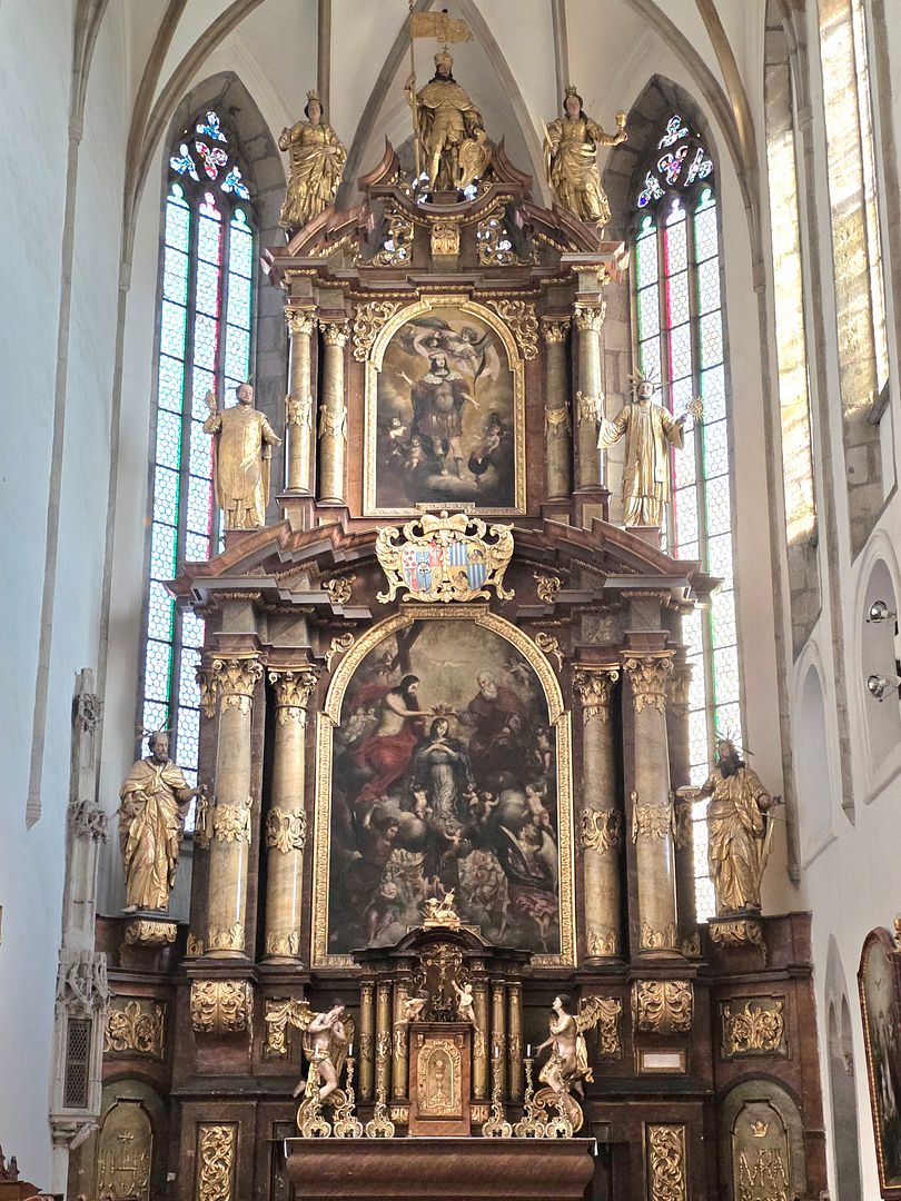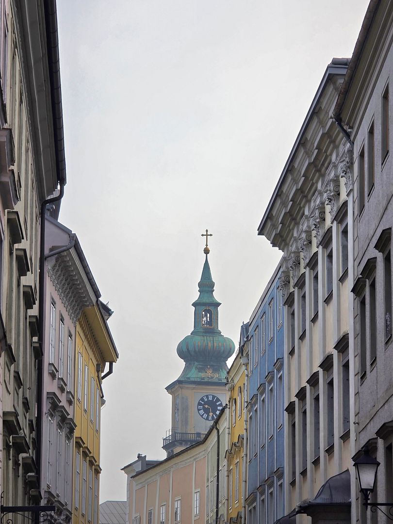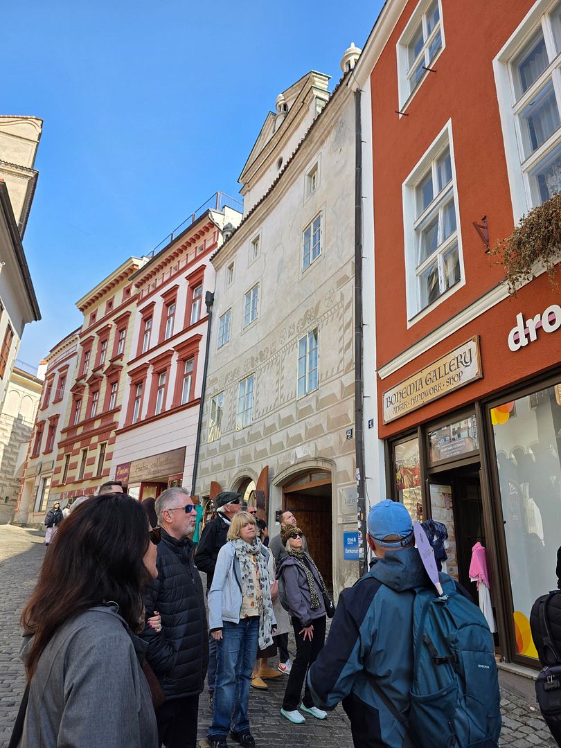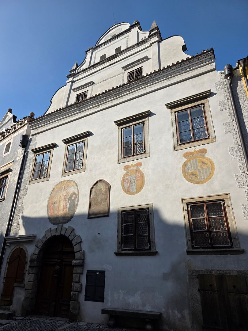 Architecture and figural paintings relating to mythology and Roman history can be seen on the facades covered with colored sgraffito (geometrical or other motives scratched into wet parquet). We would see many types of sgraffito on buildings as we walked into Old Town, too.