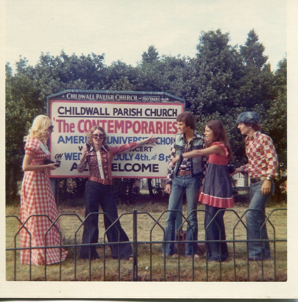 “Hymns gave way to Jesus rock in morning assembly at St. George’s Church of England School, in Meadow Road, Gravesend yesterday. The concert was given by the Contemporaries, 14 musicians from the United States, who are in the middle of a world tour. They have already completed a number of successful “gigs” in Liverpool. They are all professional musicians, but they are giving their services free. They have also appeared at Gordon Secondary School for Girls and today they will be at Northfleet Count Secondary School for Girls. On Friday they will be at Gordon Secondary School for Boys and on Monday Southfields High School.”  [this article was pretty sensationalized…the band were professionals, not the vocalists. Our World tour consisted of 4 weeks in England]