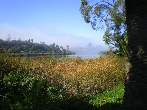 Dear and I drove up the coast last Saturday. After a drive through San Marcos Pass to stop at Cold Springs Tavern for breakfast, we headed back to the shoreline in Santa Barbara for a walk. We headed up the beachwalk to the Bird Refuge. There was quite an intense marine layer effect happening on our drive and during our walk. We could not see out into the Pacific. We headed to the refuge and the layer was a little less dense here.