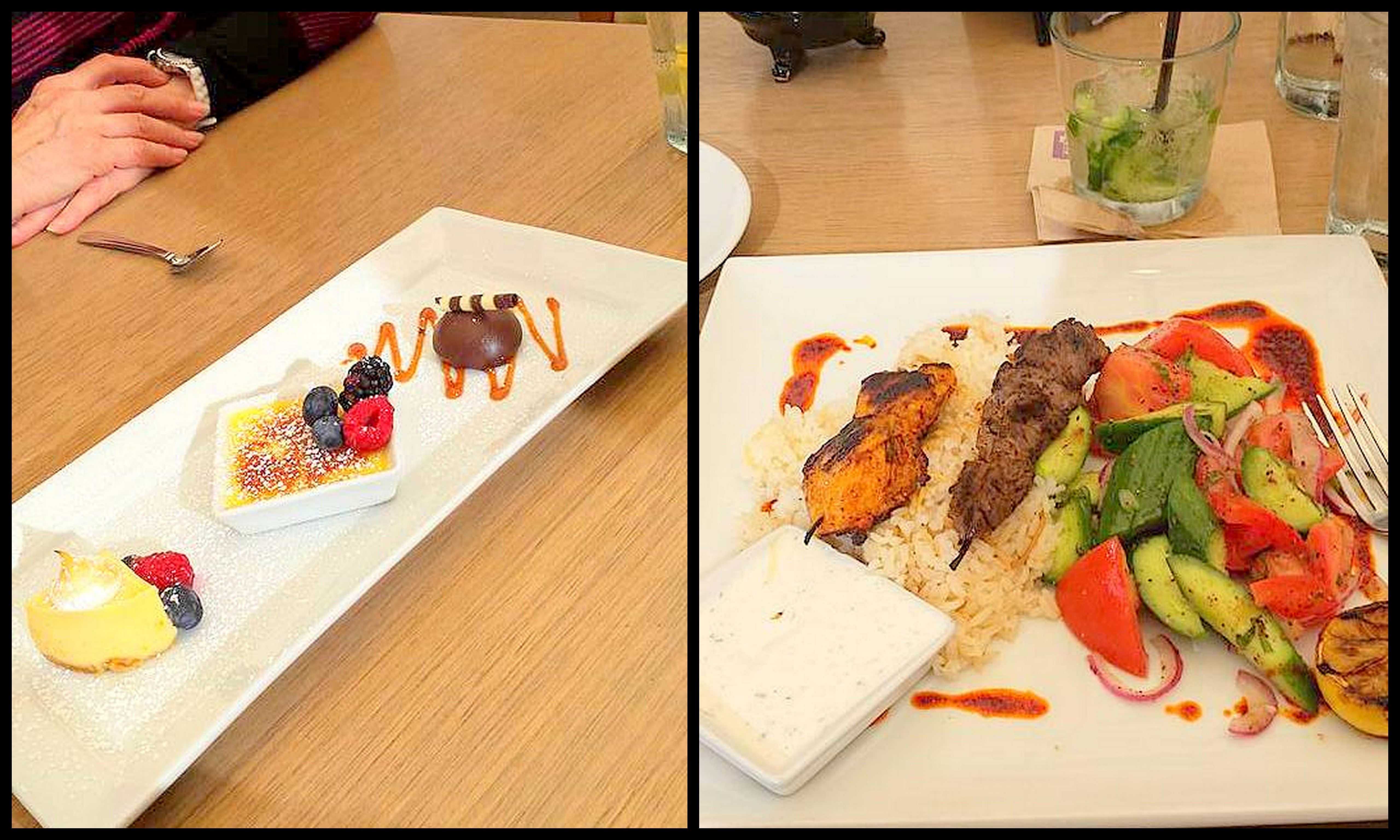 Kathy and I split our Kebob dinner and we all shared the dessert tray. Kathy, this could have been your late birthday celebration if my brain wasn’t completely fogged up by then! Oye!