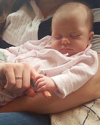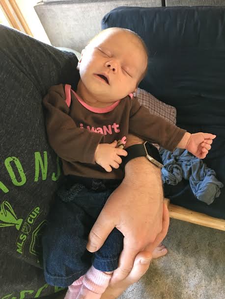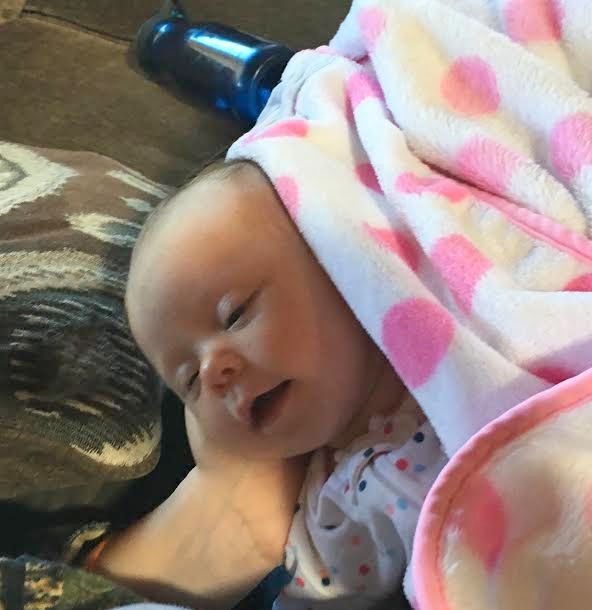Auntie Laura was determined to catch a photo of Addy smiling. In the meantime Addy had a sweet grip on auntie’s finger while cuddling.