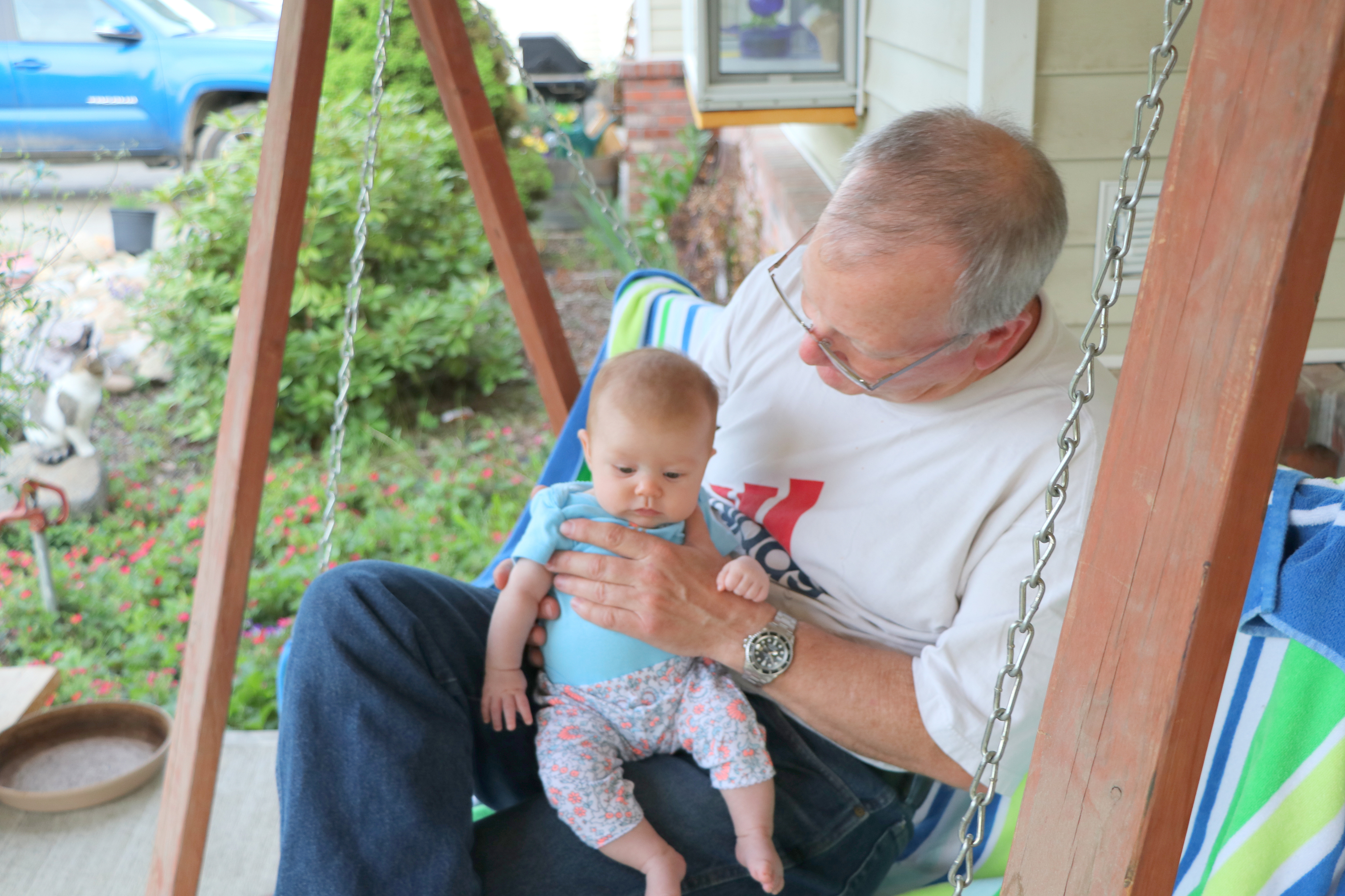 These photos were taken on Sunday May 21st. Addy is two months old here. Gramps is working towards sixty four.