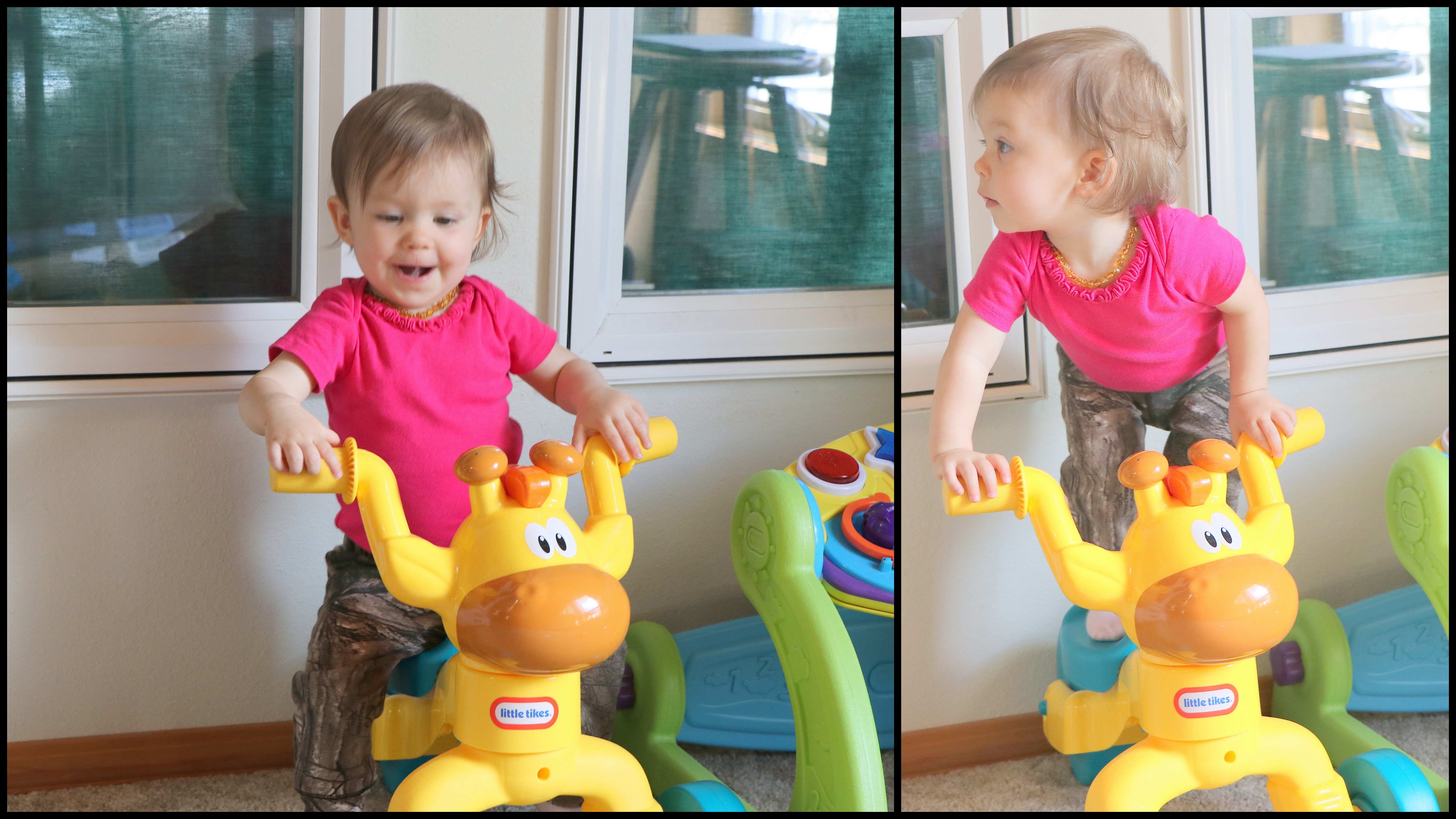 Baba had to have a little talk with her to let her know that it made me nervous when she chooses to stand on this toy instead of scooting on it.