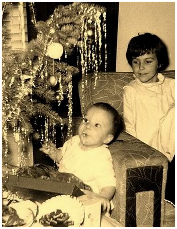 In January of 1958 our little brother Tim was born. I was so excited to have a baby brother. I’m seven in this photo. I was the baby of our family for seven years until Tim was born. We had to put the tree on a table to keep it out of Tim’s reach. That tinsel is so inviting to those little fingers along with everything else that sparkles. It was fun to enjoy Christmas with an 11 month old. I was a sick little girl during this time. The best information I have is that I had some kind of kidney infection that required a hospital stay and then a few months of recovery. I remember having a home teacher and missing Valentine’s Day at school. My home teacher brought me a bag full of Valentines from my classmates. I also remember not being able to have any salt and having to drink a lot of water. After a while a glass of water looked like medicine to me. Hmmm, maybe that’s why I don’t like to be told to drink water to this day. I enjoy it in moderation. 🙂