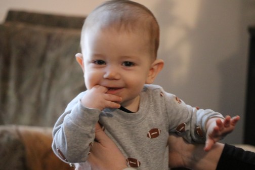 1. He is a cutie pie! Hope that your cold is long gone. My grandson had strep throat just before Christmas. So far, the rest of us remain vertical.