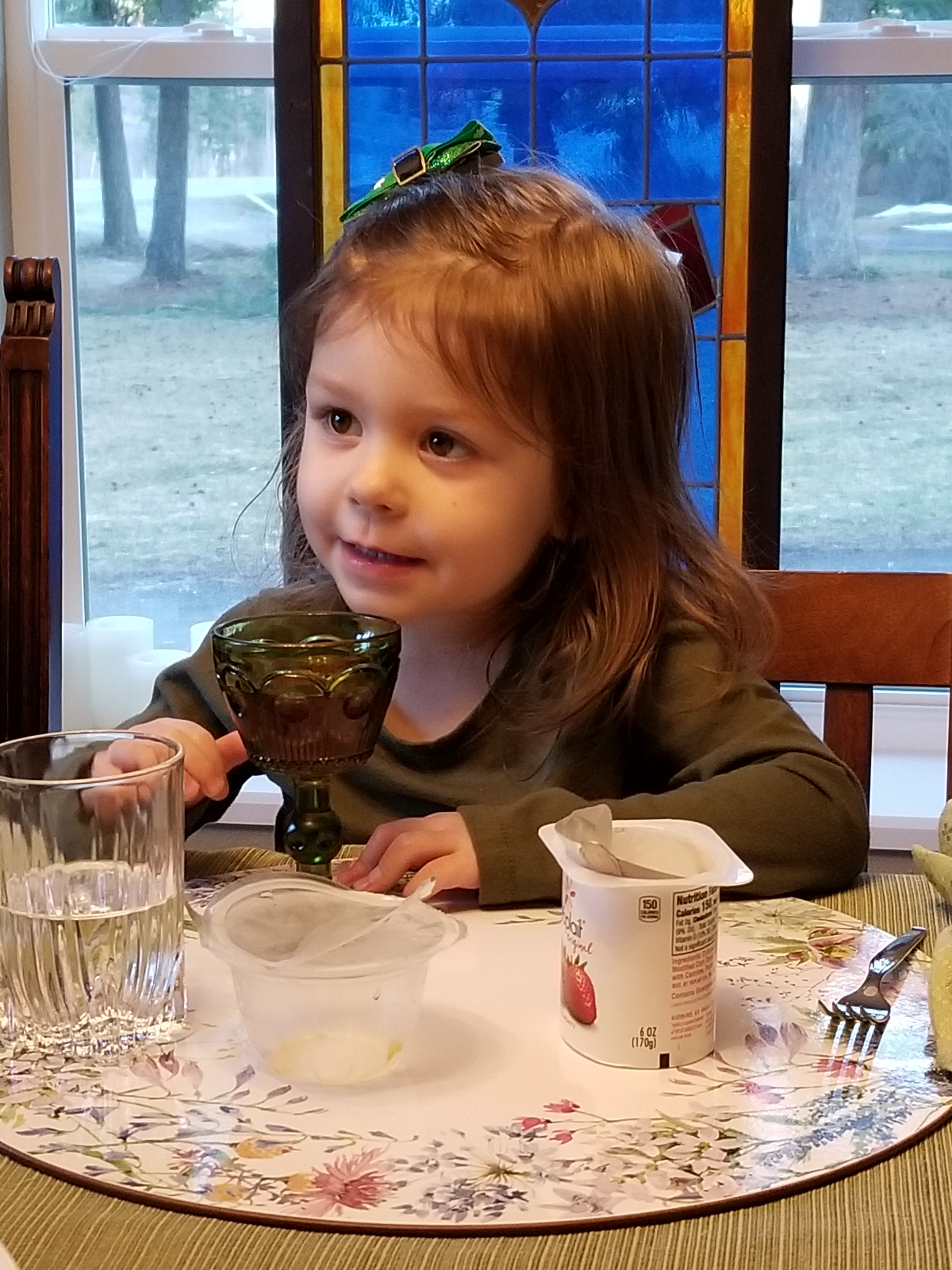 Thankful for the time you had just prior. It looks like she opted for substitutes on her St. Patrick’s Day meal. =)