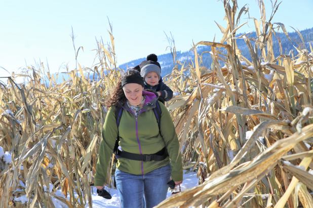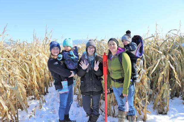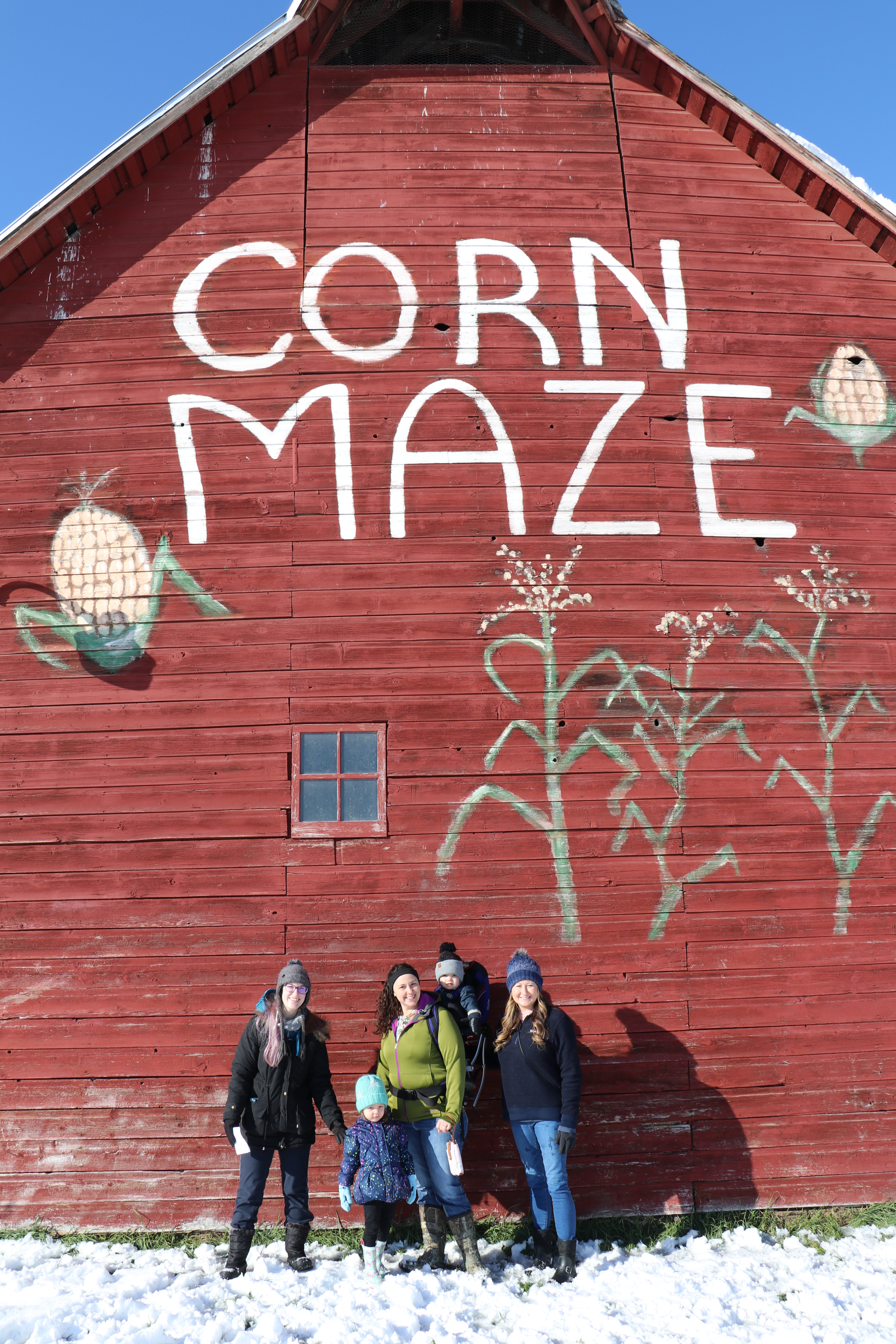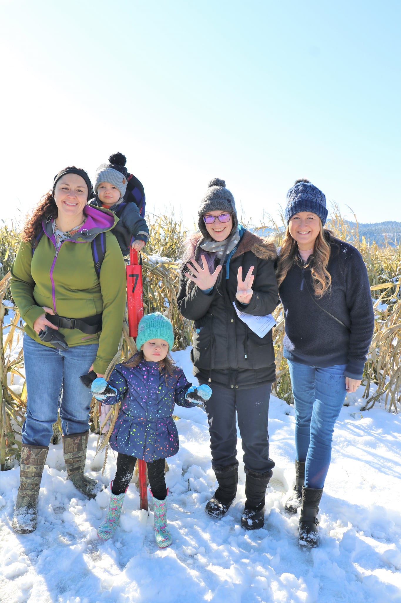 What a difference a week makes. Sunday the 18th of October my brother and his kids enjoyed the maze with me in sunshine and a bit of mud. On Saturday the 24th of October the patch paths were covered in snow. Our car arrived at the Corn Maze location a little after ten and it was closed. After checking on line we saw that they were due to open at eleven. Jamie and the littles arrived a little before 10:30 and the owner of the maze spotted us and came over to open up early for us. We were the only group on the maze from start to finish. Thank you Colville Corn Maze for a detailed maze experience and for opening early for us!