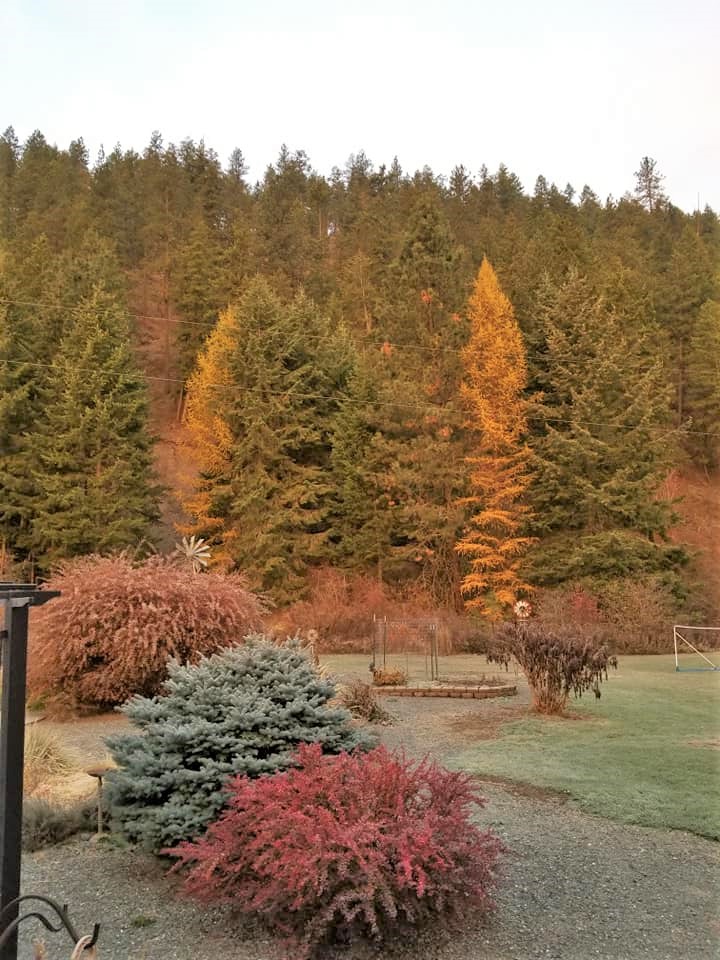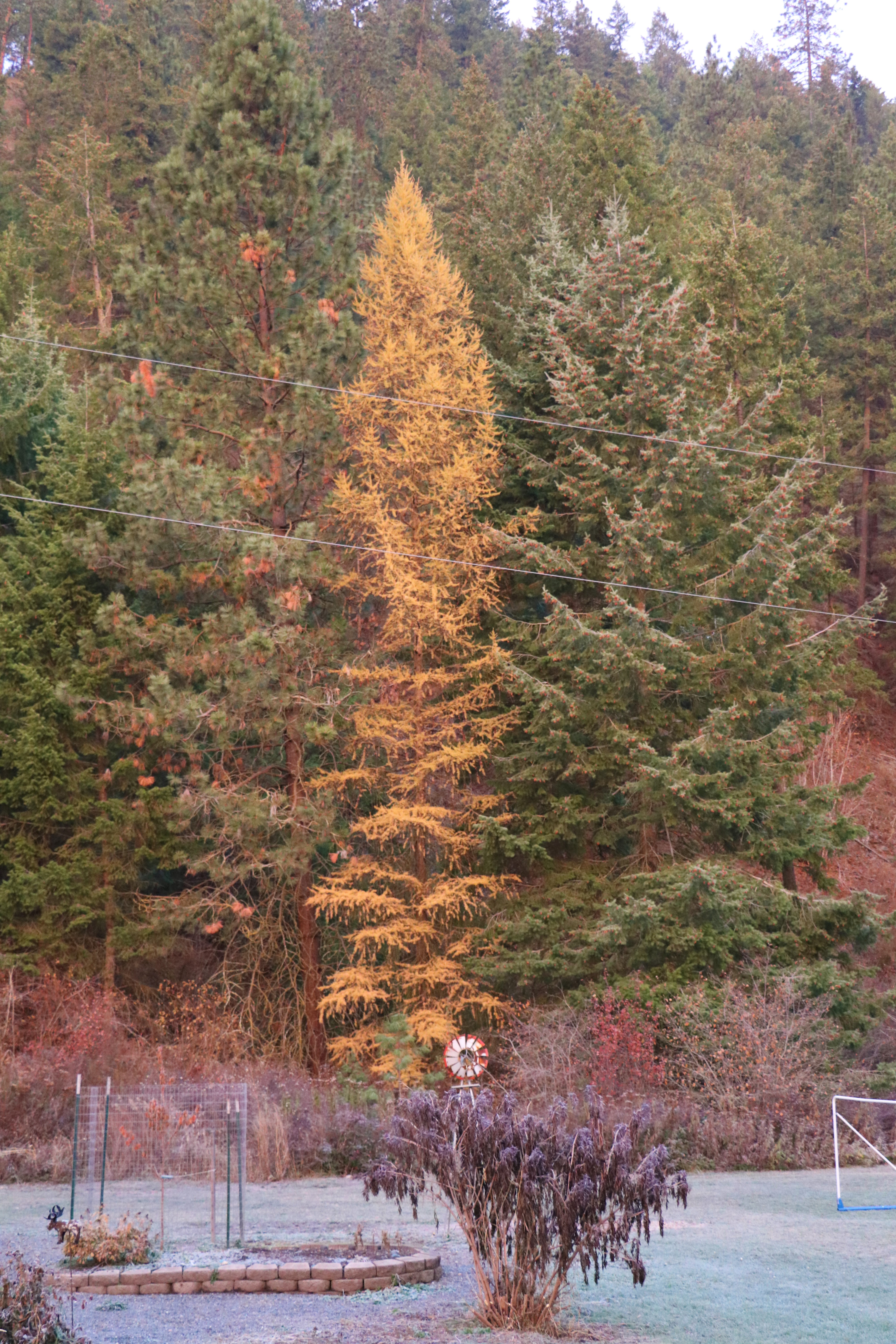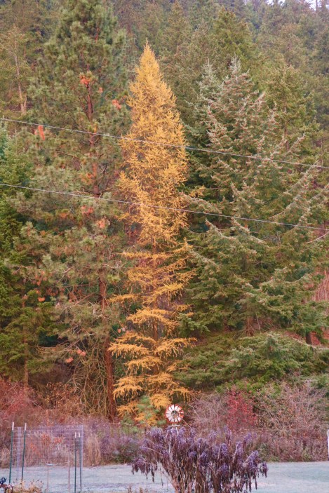 The Larch trees are a beautiful golden color, pretty views of the trees. It is nice to see the windows and door on the shop! Have a great day and a happy weekend!