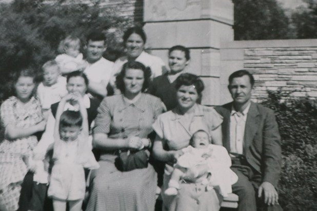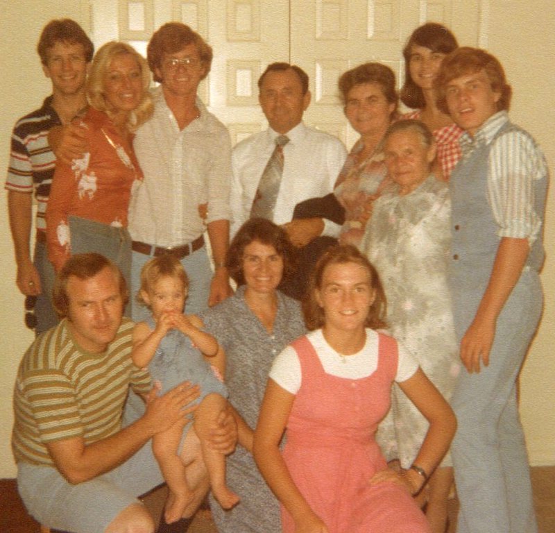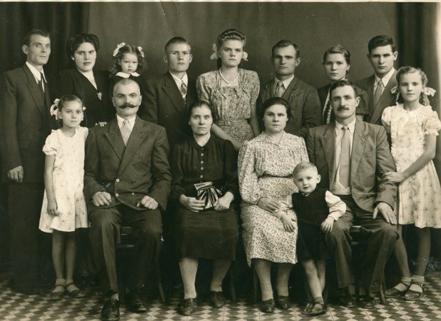 The center front row with our pop, mom, Babushka Vera, Babushka Martha and Dzeduska Timofei.