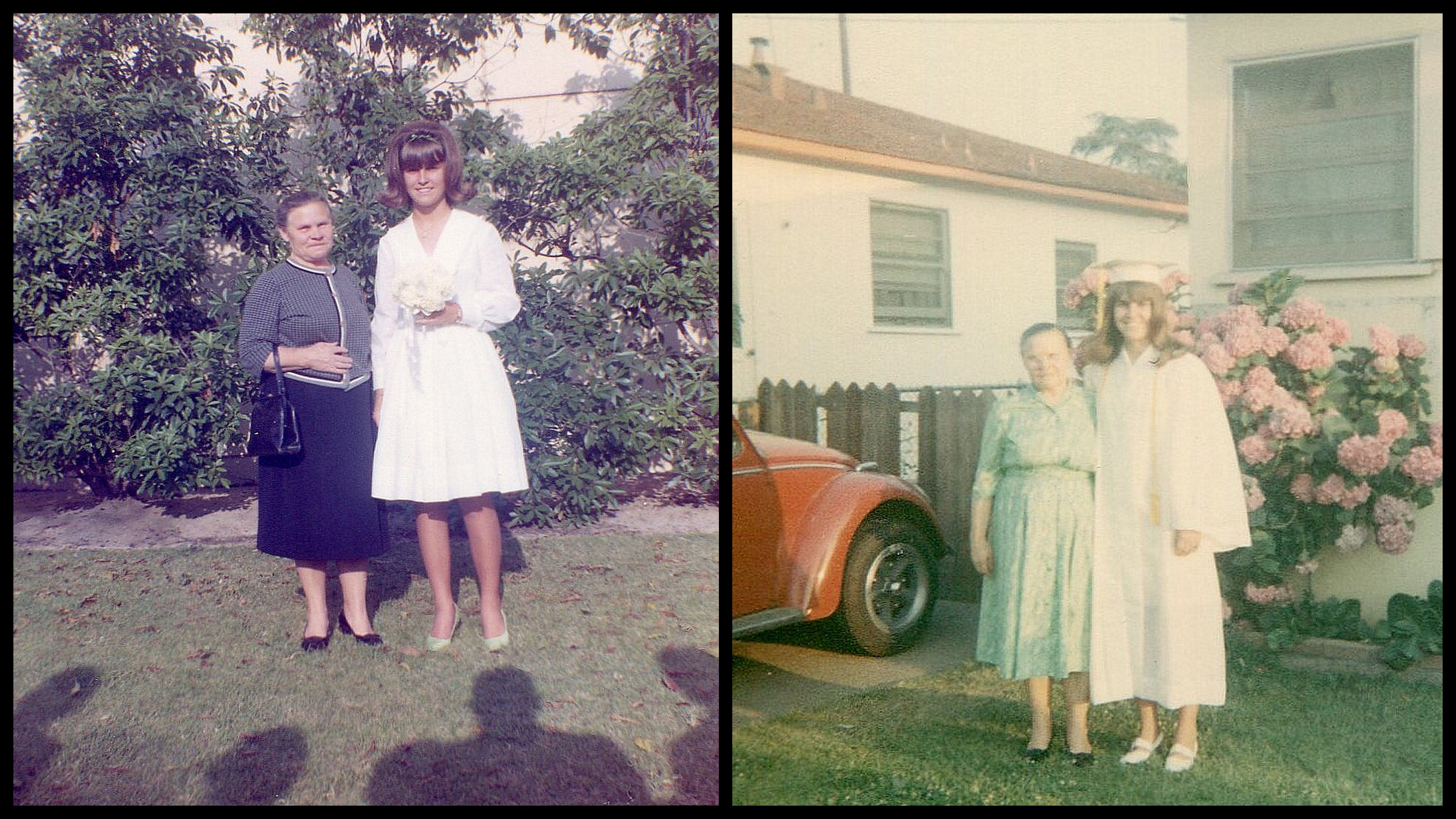 Me and Babushka at my 9th grade graduation and my high school graduation. I remember shopping with her for a dress at Sear’s once and she wore a size 16-1/2. She always searched for a dress with 3/4 length sleeves.