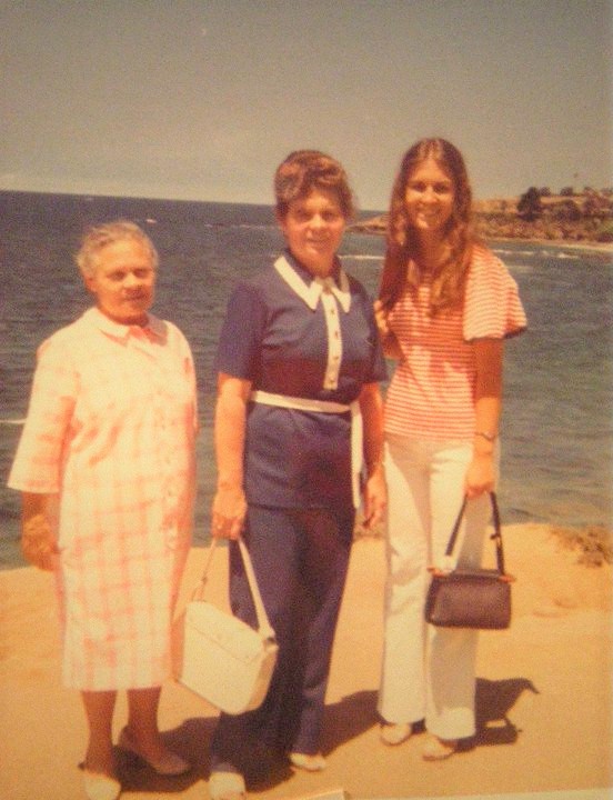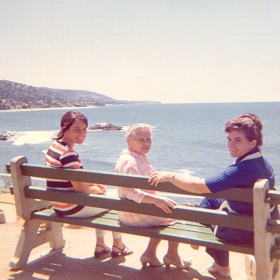 Babushka, mom and me at Laguna Beach in California.