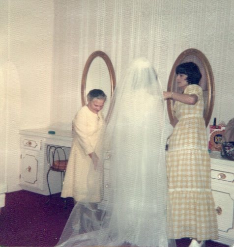 Babushka, me and our mom at Dear and my wedding in December of 1974.