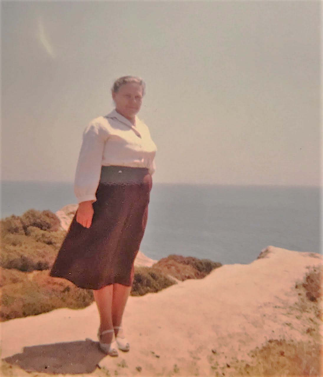 This is a new to me photo of our babushka at a beach in California.