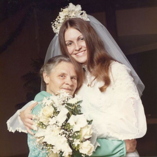 Babushka at our sister Kathy’s wedding with our sister Vera in August of 1974.