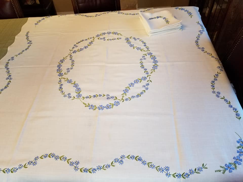 For our wedding Babushka Vera embroidered this tablecloth along with 8 napkins. A treasured gift. It’s amazing to us that her embroidery was so beautiful even with the handicap of having only one  hand.