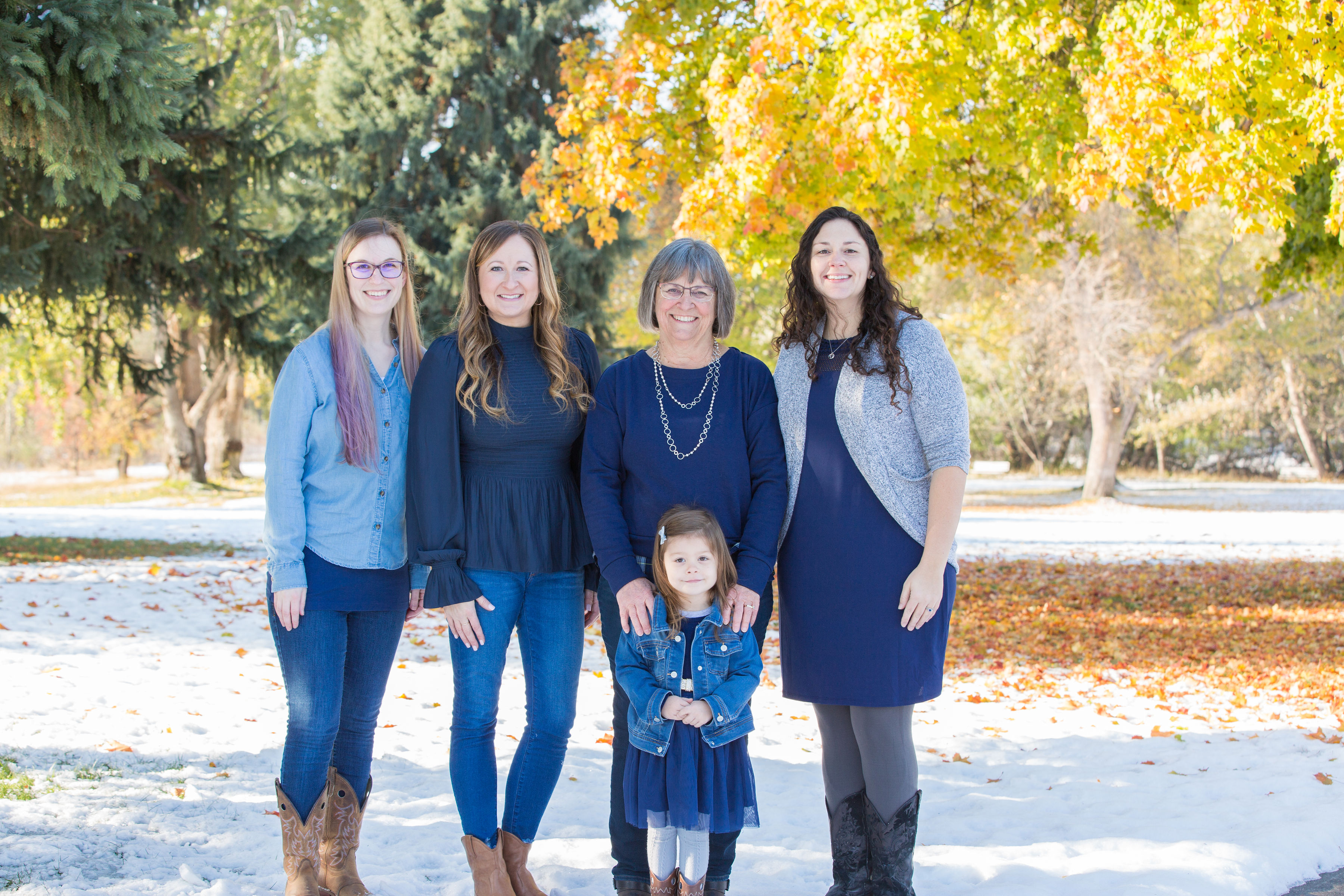 4. What beautiful pics of you and your family. I love the blues that you are wearing and as a previous commenter said “the snow just adds to the beauty”.