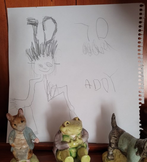 Addy looked carefully at my tiara and then proceeded to draw a likeness of me with the tiara while we were finishing up our dinner at Churchill’s. I love it!