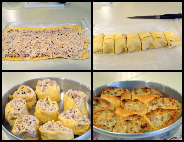 I saw these chicken rolls using Pillsbury Crescent Refrigerator Dough Sheets and had to give them a try. I didn’t realize that the Crescent dough was sold in sheets that aren’t perforated. It makes this recipe a lot simpler as I purchased the basic crescent rolls and had to pinch all the perforations! Buy the sheets if you want to make this tasty dish.
