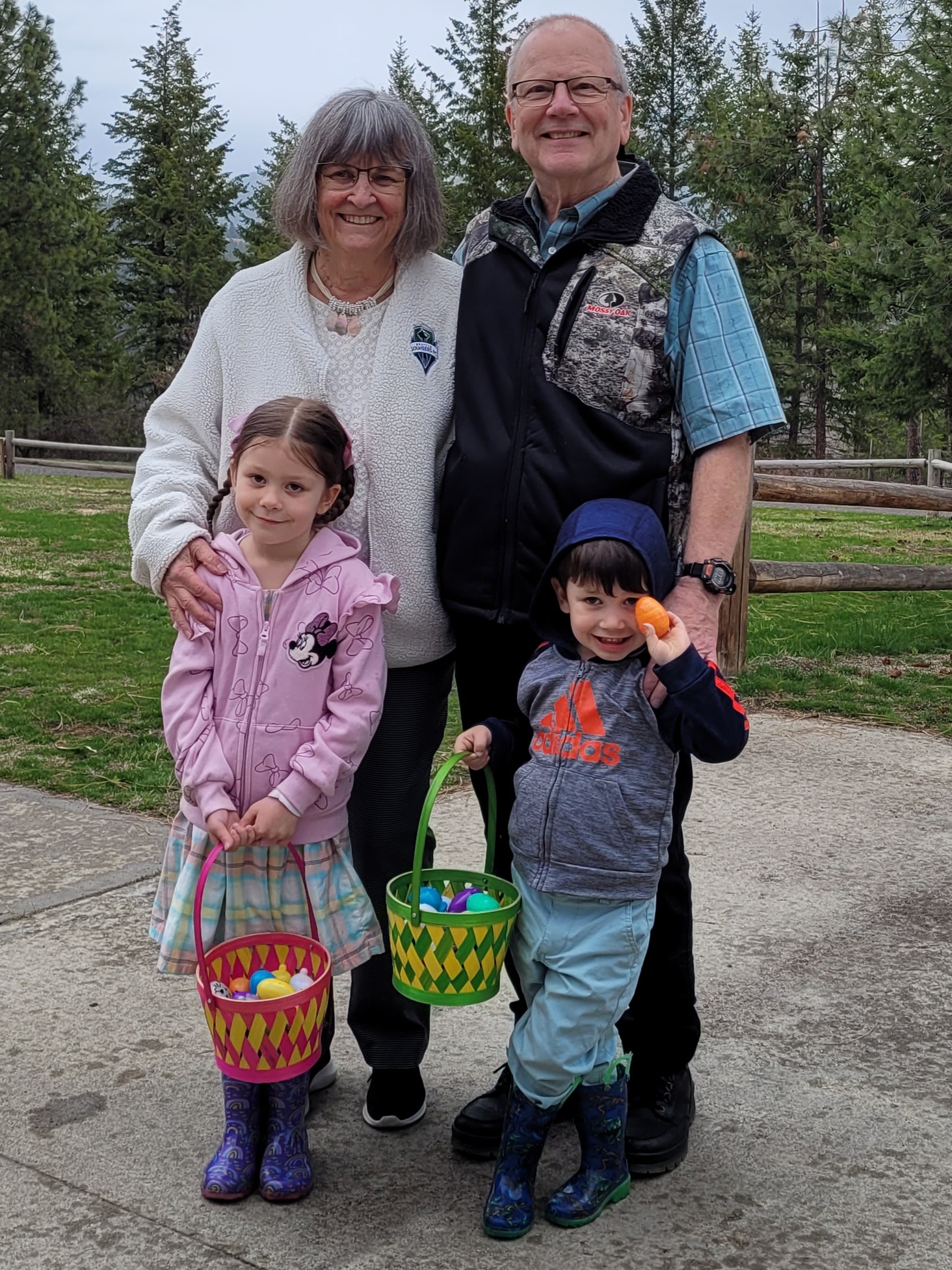 We had a little rain just in time for the Easter Egg hunt. That didn’t deter the Grands at all.