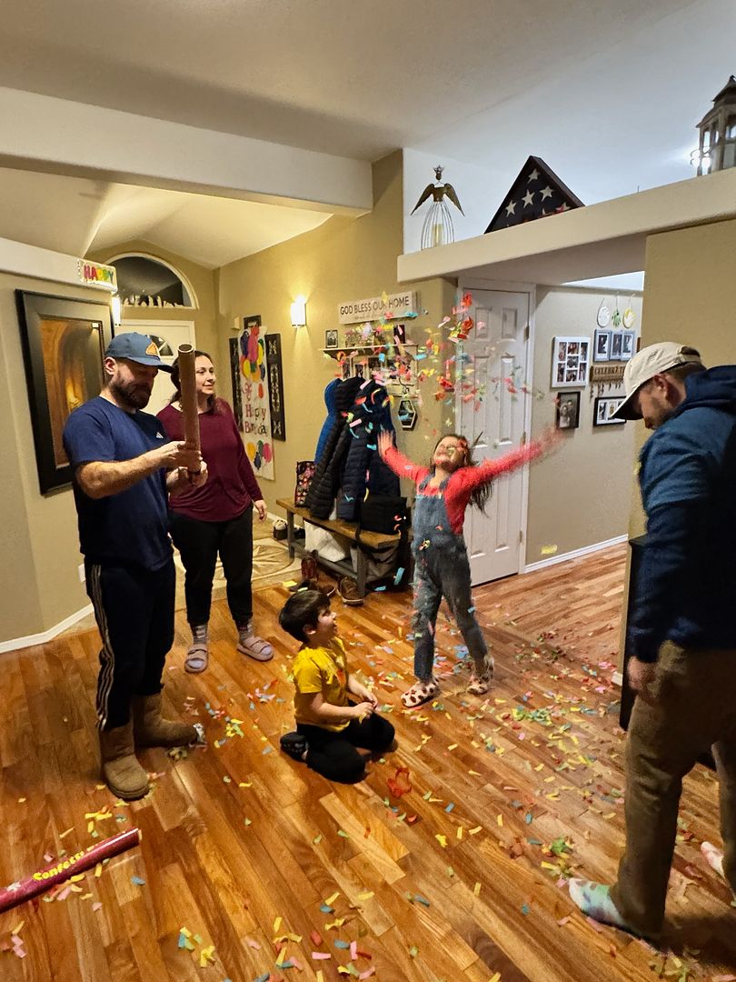 Oh, yes, what a happy surprise!! Happy birthday to all of the January birthdays! Of course, it looks like everyone was happy, not just the birthday people! The confetti was a fun celebratory touch! I love the photo of Addy with her arms wide (throwing confetti or just enjoying it?), as well as the one of JJ reading in the fort with his Uncle Josh. Good times!