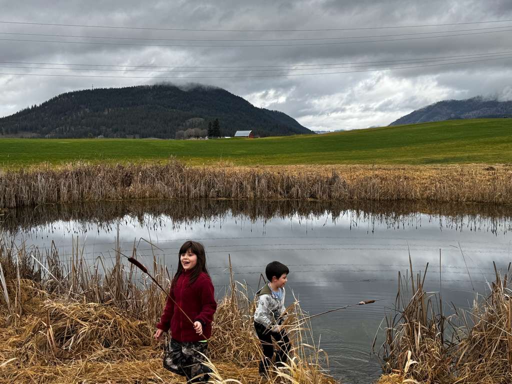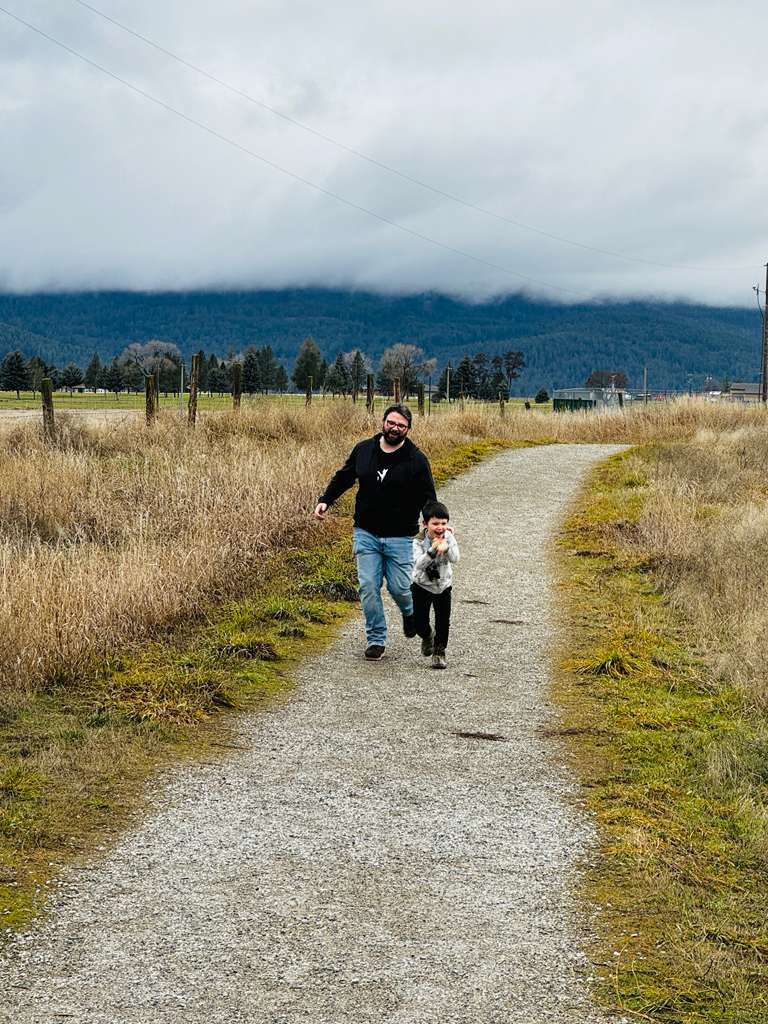 After our traditional Swedish Pancake breakfast, the kids gathered at the Rotary trail for a walk. Greg, who is half Swedish, does the honors of cooking the pancakes at every special family gathering.