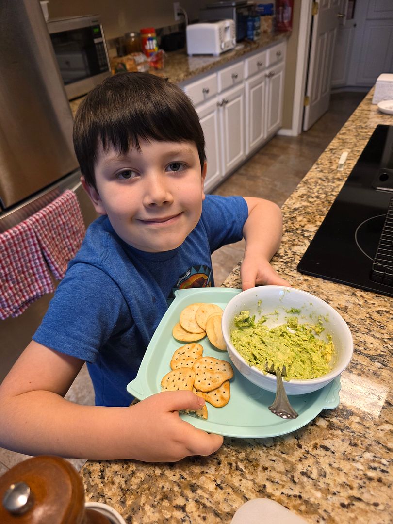 It was JJ’s afternoon yesterday while Addy was at Irish dance. He looked in the refrigerator and announced to me that he was making guacamole. He had the avocados out and said “Baba, I need onion powder and lime juice, and a little salt, please.”