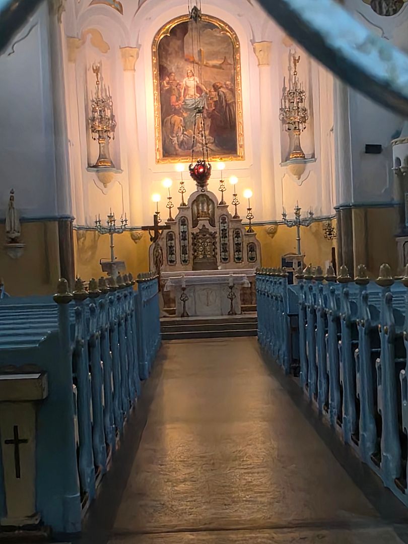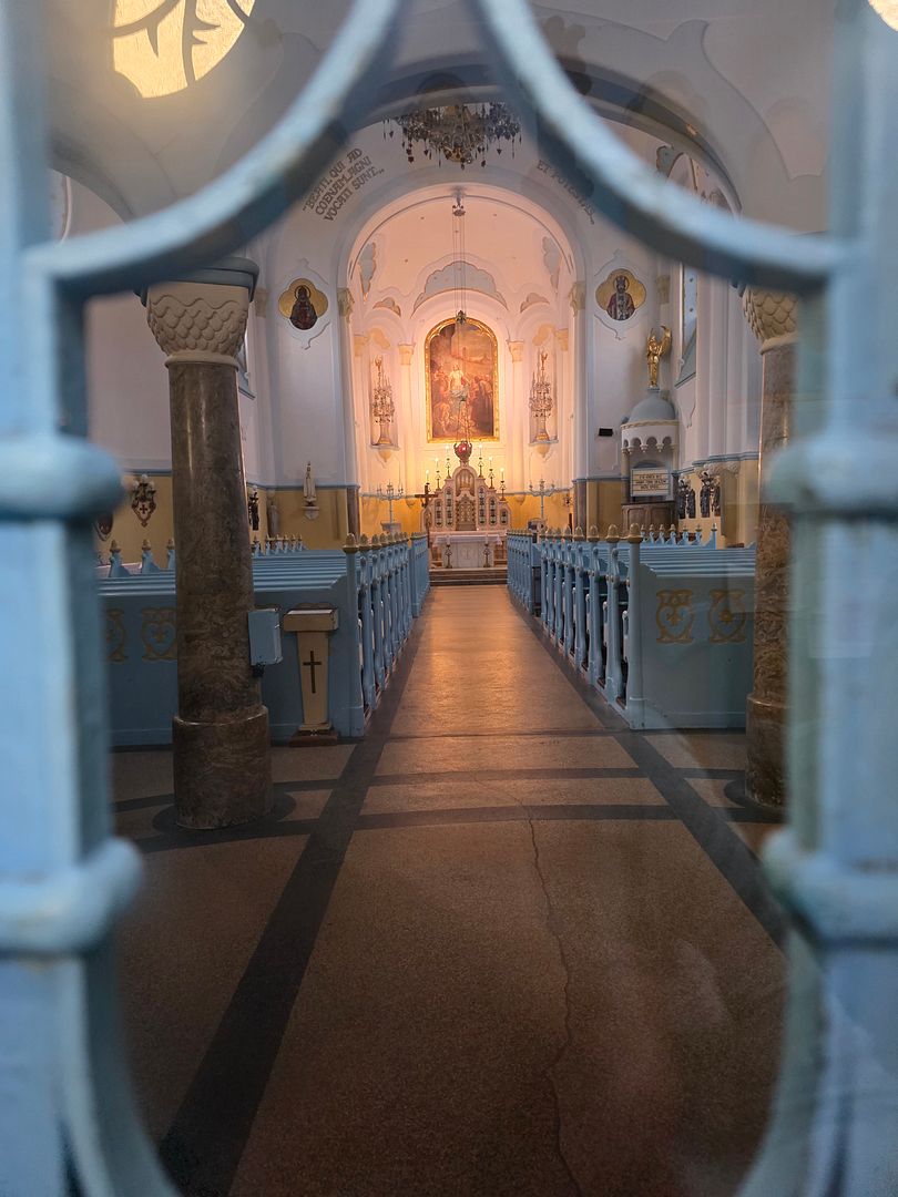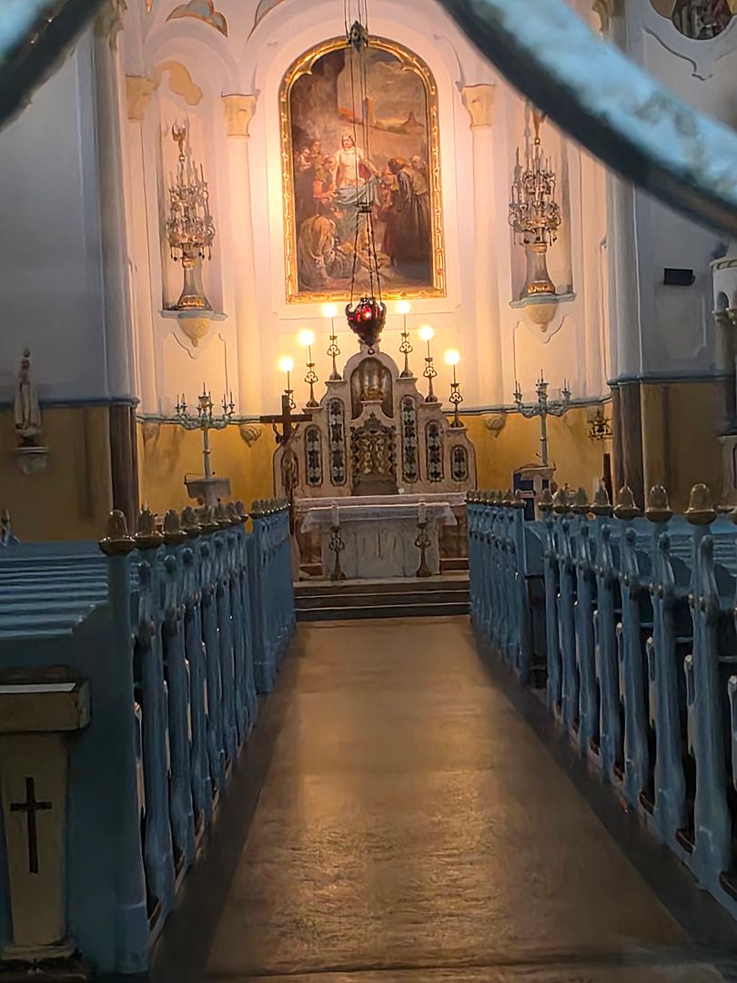 We were able to just get inside a little vestibule area with locked iron gates so we couldn’t walk in amongst the pews. I think Blue church is a very appropriate name for this gem. As you can see even the pews are blue. The walls are blue, too, except for the Altar area.