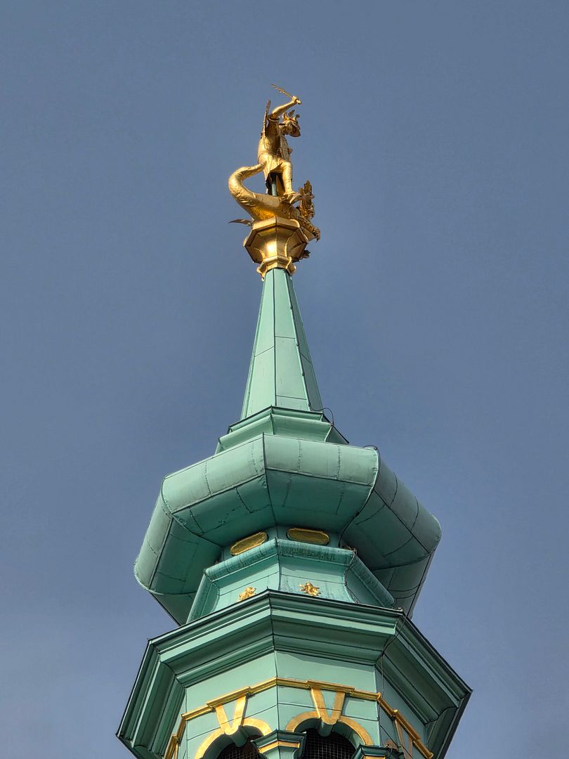 The Statue of St. Michael the archangel with the dragon sits on top.