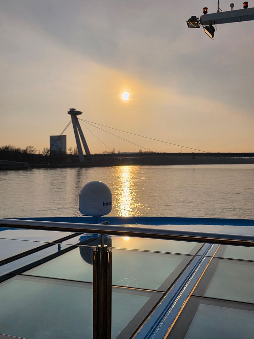 On Monday March 2nd, we were up early and the views along the river were moody until the sun broke through. We had sailed all night and into the morning. It was 140 miles from Budapest to Bratislava. We passed through the largest lock on our journey, Gabcikovo Lock & Hydroelectric Powerplant. We wouldn’t arrive to Bratislava until after lunch.
