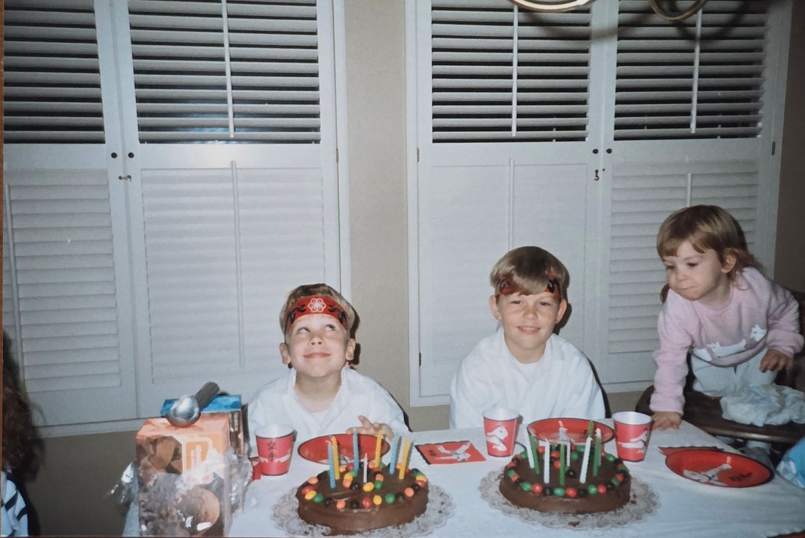 I’ve had some nostalgic days going through photo albums after the death of a dear friend of ours and it was uncanny to come across our sons combined 7th and 9th birthday party photos and to see the similarity to our grandsons party this Spring some thirty eight years later!!