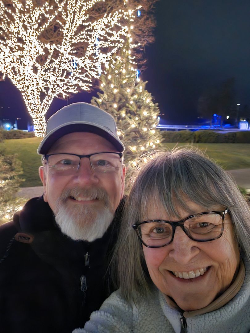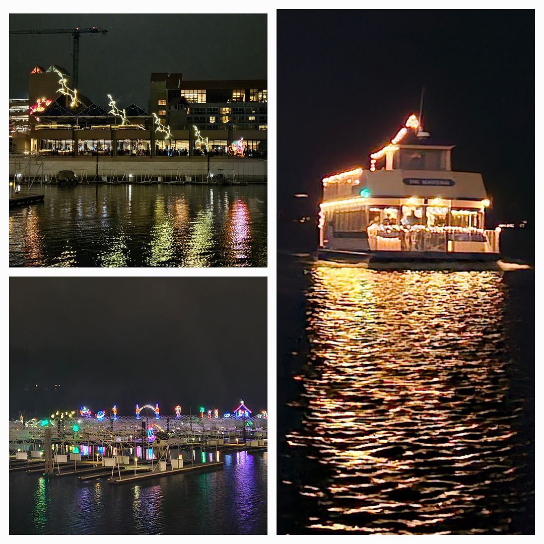 We already had a wonderful anniversary celebration in Walla Walla with our family of ten but that doesn’t stop us from continuing our celebration today. We are having a small overnight getaway in Idaho to celebrate our actual day. The photo above is our celebration meal at Parallel 47, a restaurant in Hayden, Idaho. The food was so satisfying. After dinner we walked the Christmas lights boardwalk at the Coeur d’Alene Resort.