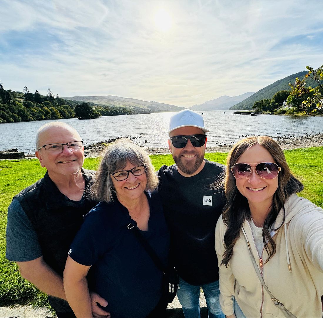 Here we are in Kenmore, Scotland with Josh and Laura giving a nod to Kenmore, Washington where we lived for 20 years.