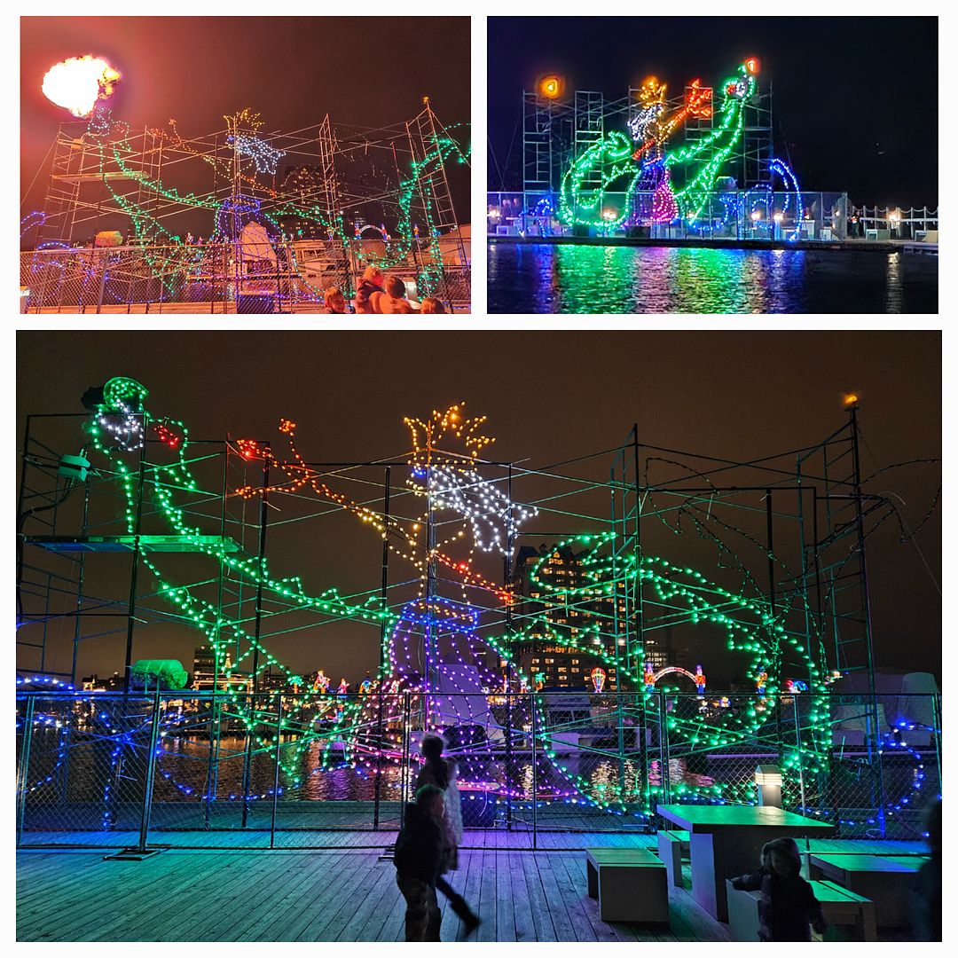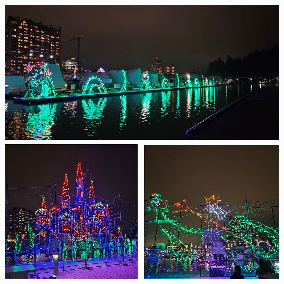 Full and Satisfied we made our way back to our lodging. After putting on some layers of clothing and gloves we walked the short distance to the CDA resort to walk the boardwalk of Christmas lights that they annually light up for Christmas and for their Christmas lights cruises on the lake.