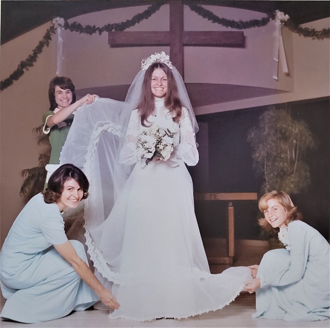 My sisters on our wedding day. Kathy, kneeling on the left, also got married in 1974.