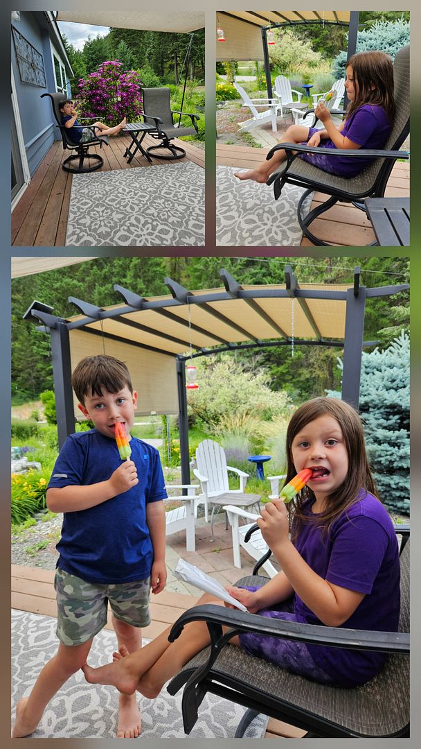 On Wednesday when I asked what treats Baba should have for their visit, JJ suggested popsicles. He said Ice cream can be eaten inside but popsicles are for outside.