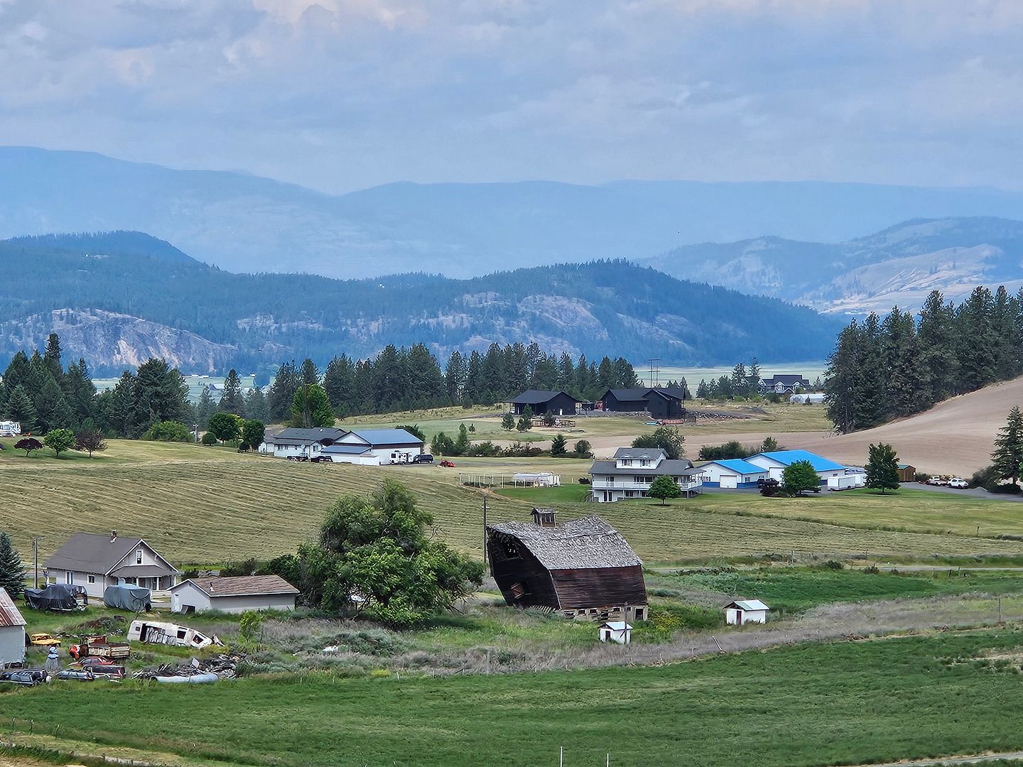 A view from the mountain driveway. That barn is leaning more and more. We are all wondering when it will collapse.