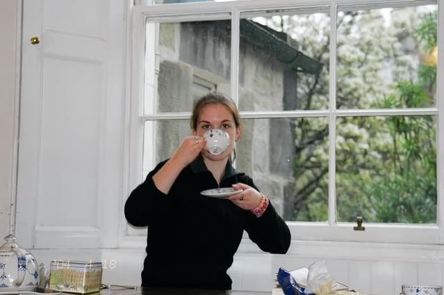 I love this photo of our daughter Katie drinking tea in our rented apartment in April of 2004 in Edinburgh.
