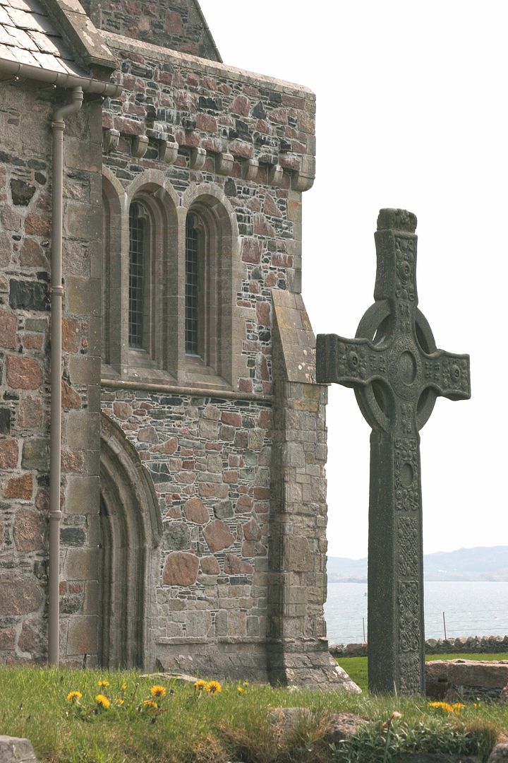 St. Columba, an Irish scholar, soldier, priest, and founder of monasteries, got into a small war over the possession of an illegally copied Psalm book. Victorious but sickened by the bloodshed, Columba left Ireland, vowing never to return. According to legend, the first bit of land out of sight of his homeland was Iona. He stopped here in 563 and established the abbey.