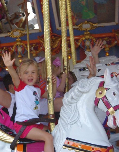 On to the Carousel. This was Miss Hope’s first ride on one. She was so interested in everything and when the ride came to the end she cried when Aunt Lana took her off her horse!