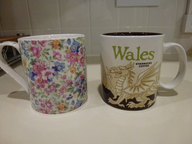 The mug on the left is my favorite daily mug. It greets me in the morning with a good 16 ounces of coffee. I bought that mug in Windsor, England at a TKMaxx.