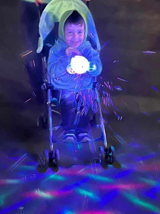 Addy and JJ saw so many kids in the park with these Micky bubble machines and their mom and dad surprised them with their own at the end of the evening. I think they were delighted!