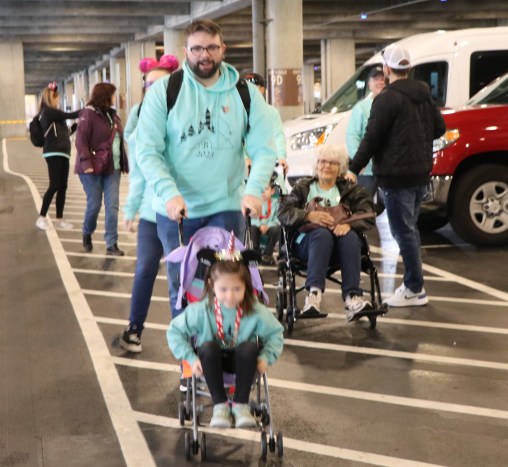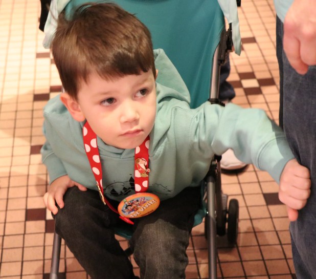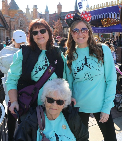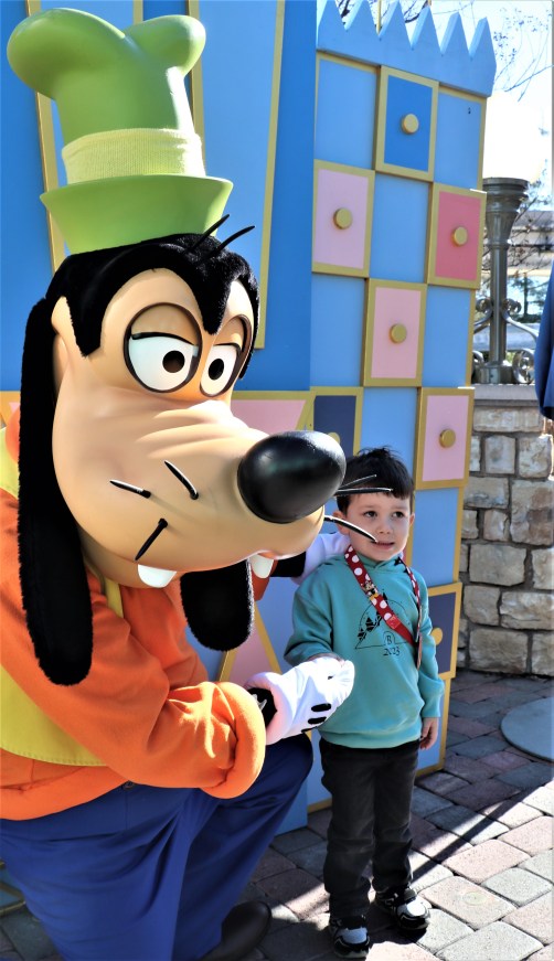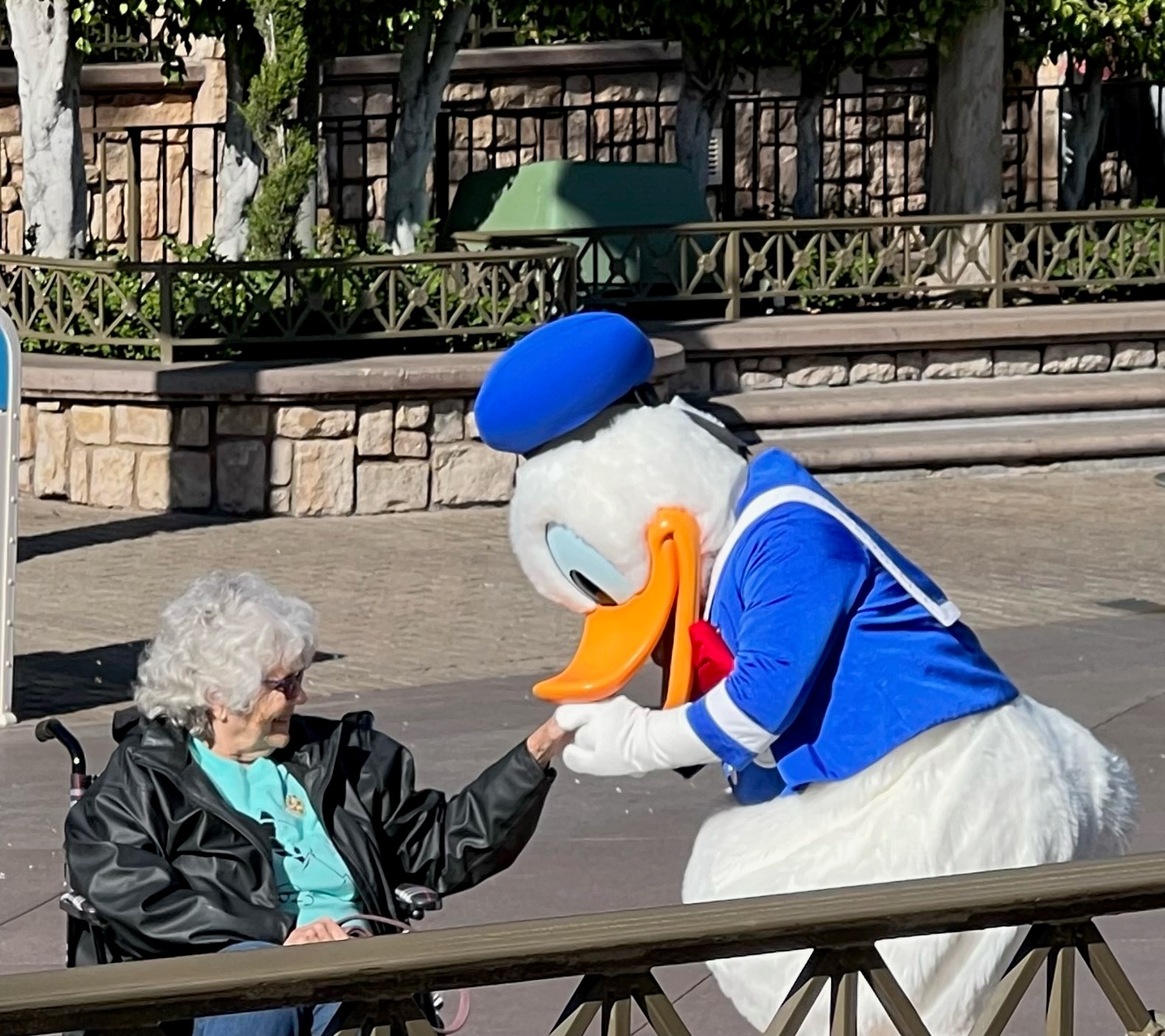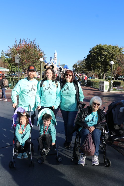 The Disney characters rotate out during the day getting breaks. Before we made it to the characters Minnie Mouse rotated out much to Addy’s dismay. We assured her we’d do all we could to meet up with Minnie sometime during the day. Every character that walked off the job for their break stopped to greet Granny Great waiting out of the line in her wheel chair.