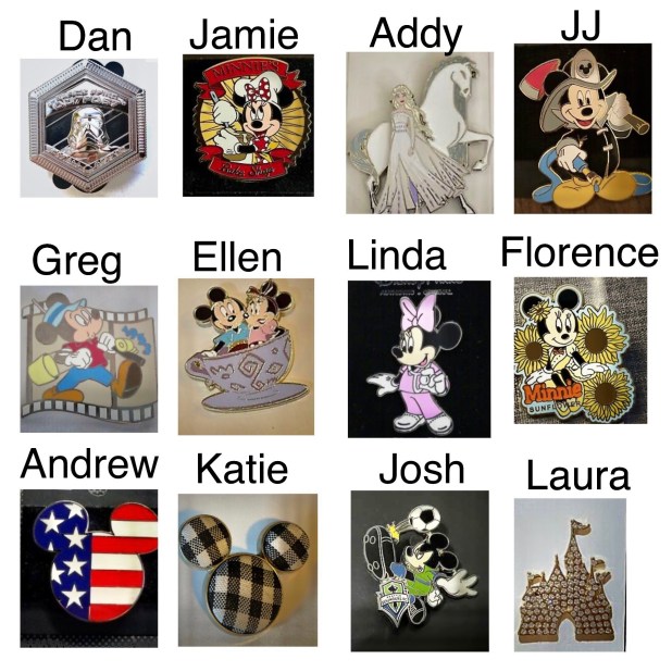 Pins are a big deal at Disneyland and Auntie LoLo surprised us all with a special pin for the day. I wish I would have thought to get a photograph of each special pin. Thank you so much for your thoughtfulness, LoLo! Update: After reading this post dear Auntie Lolo sent me a collage of all the pins! Thank you, LoLo!