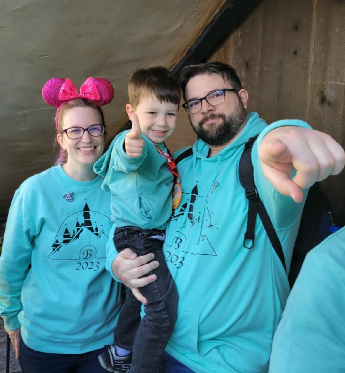 Jamie made special ears for Addy and JJ. Dan ended up wearing JJ’s because JJ’s Dinosaur ears didn’t cooperate with his three year old self.