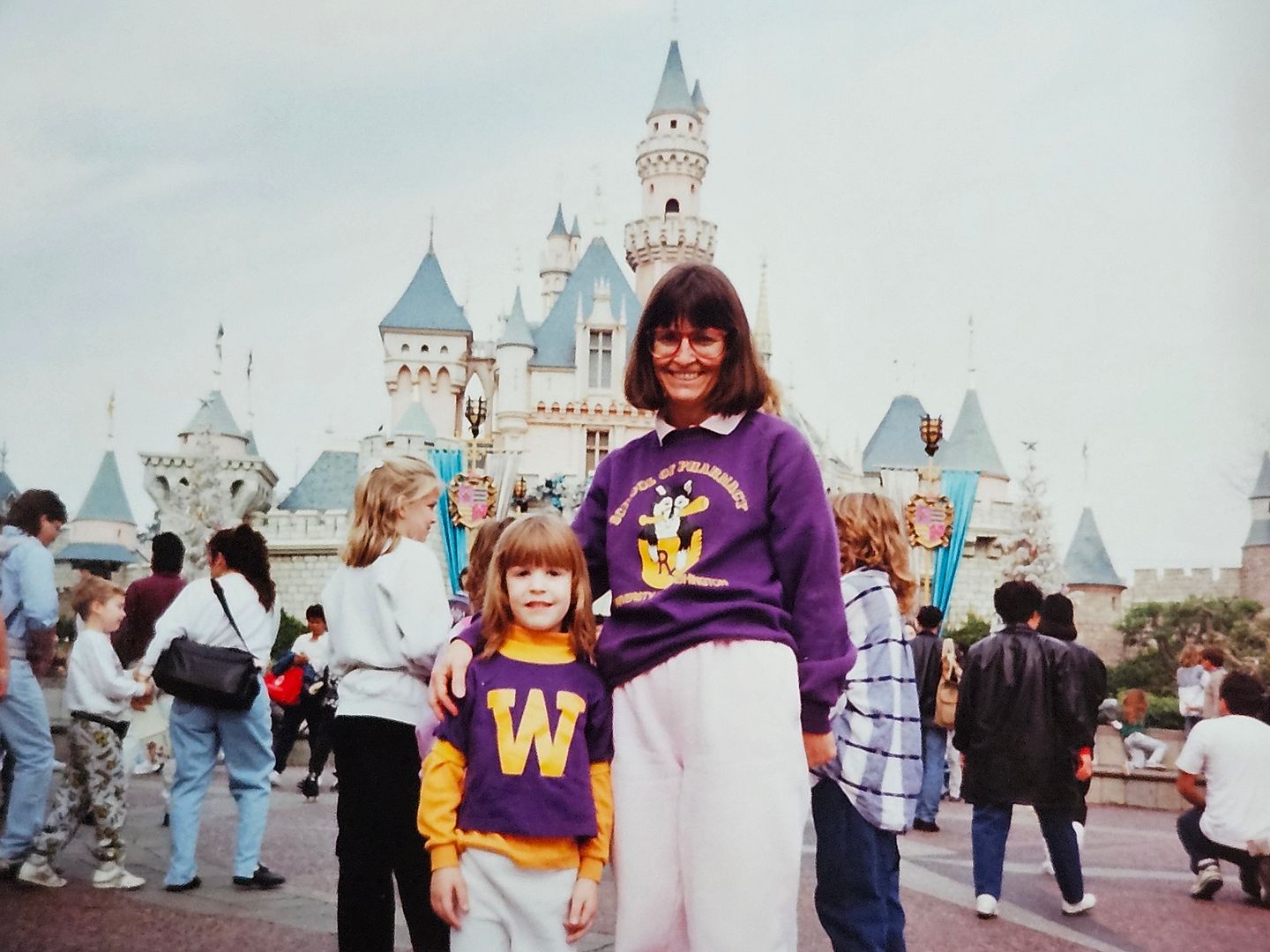 One of the Hodgepodge questions asked us if we’d been to a Disney Park. This photo is from the end of 1991 just before we attended the 1992 Rose Bowl Game in Pasadena on New Year’s Day 1992, University of Washington v. Michigan. Many college football fans represented their colors at Disneyland before and after the Rose Bowl game.