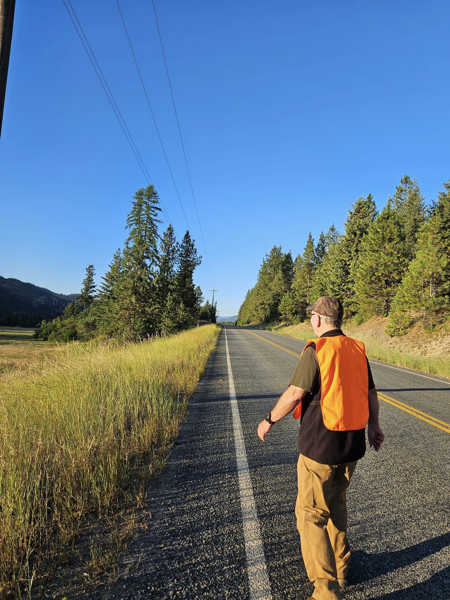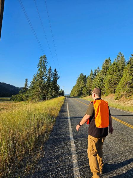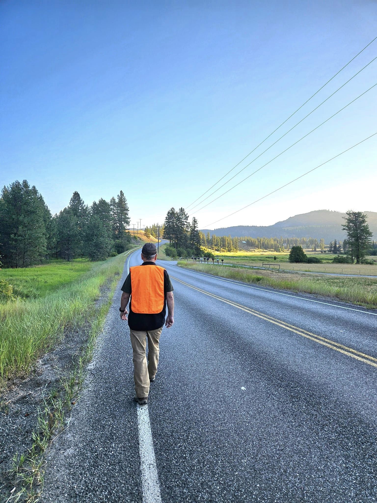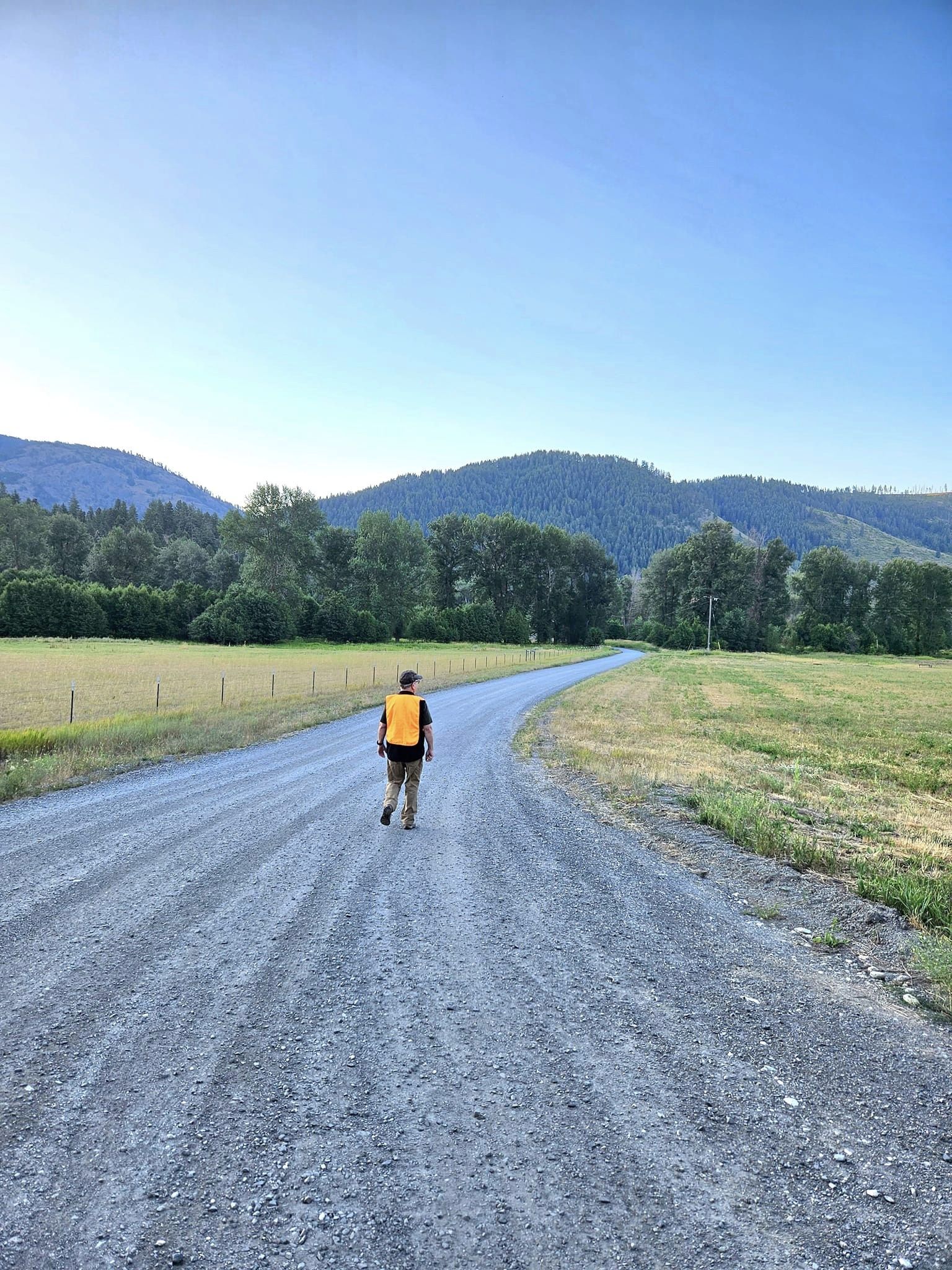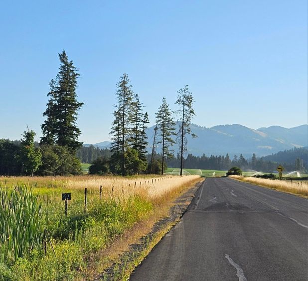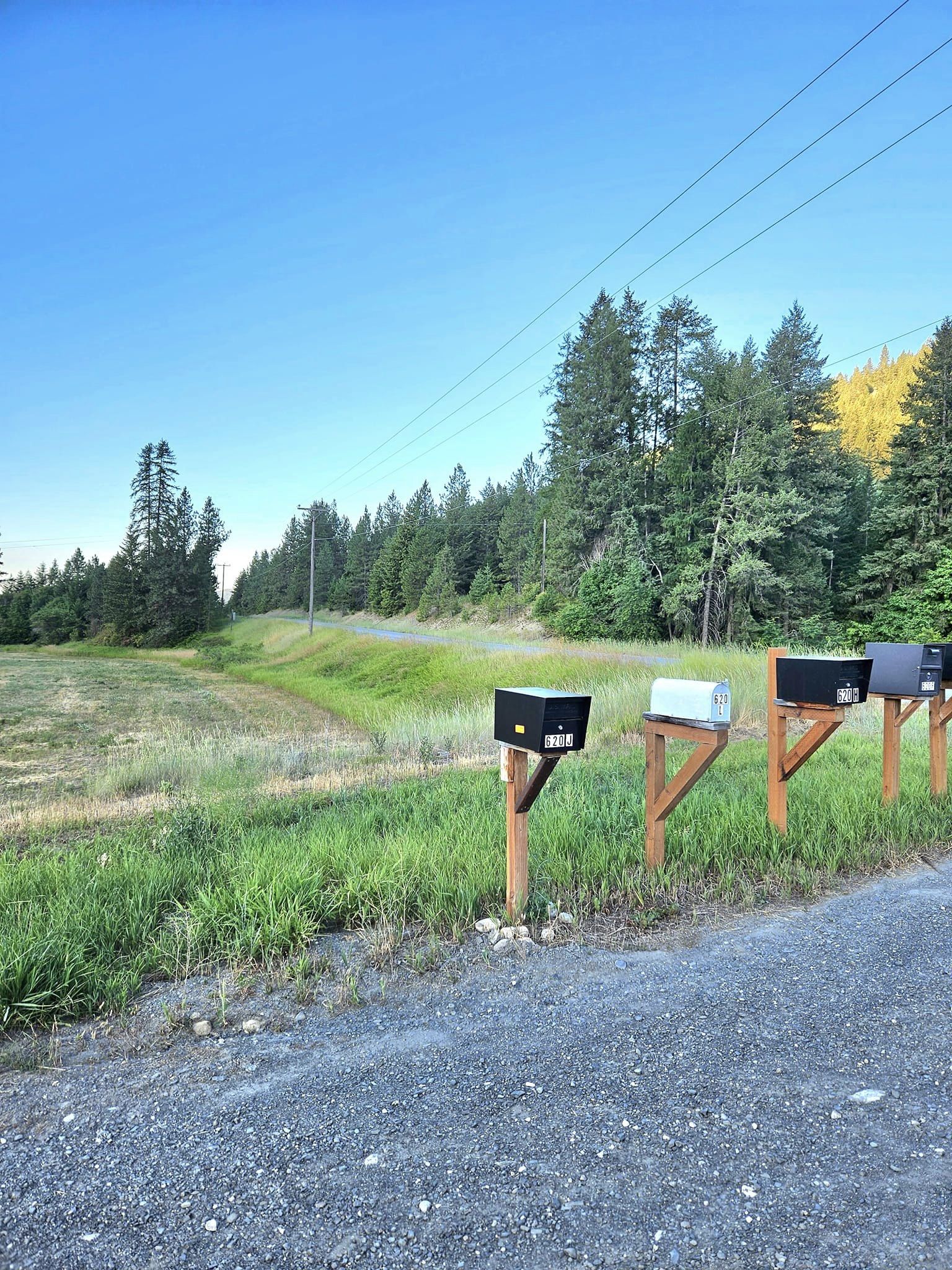 Sunday the 16th of July we headed out our door and walked north on our road until we reached this private drive that leads to many houses (see the mailboxes) and walked down across the stream and back to the main road again. On Sundays our road has a lot less traffic and very few if any log trucks or large chip trucks.