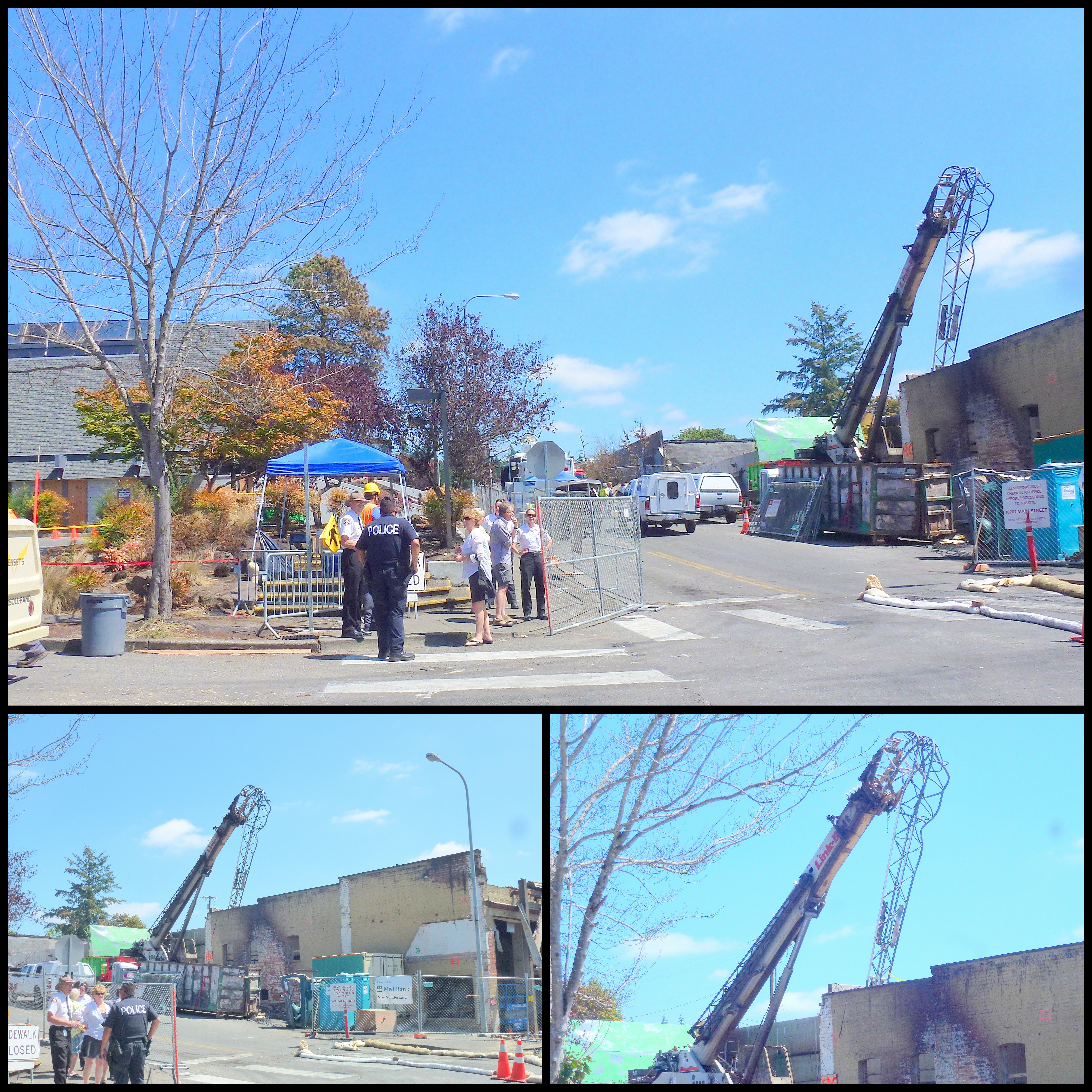 The fire started in a section of downtown that was being renovated into new apartments. The crane you see was destroyed in the fire, too. The fire was so intense it hopped the street to destroy the little Bothell Mall.