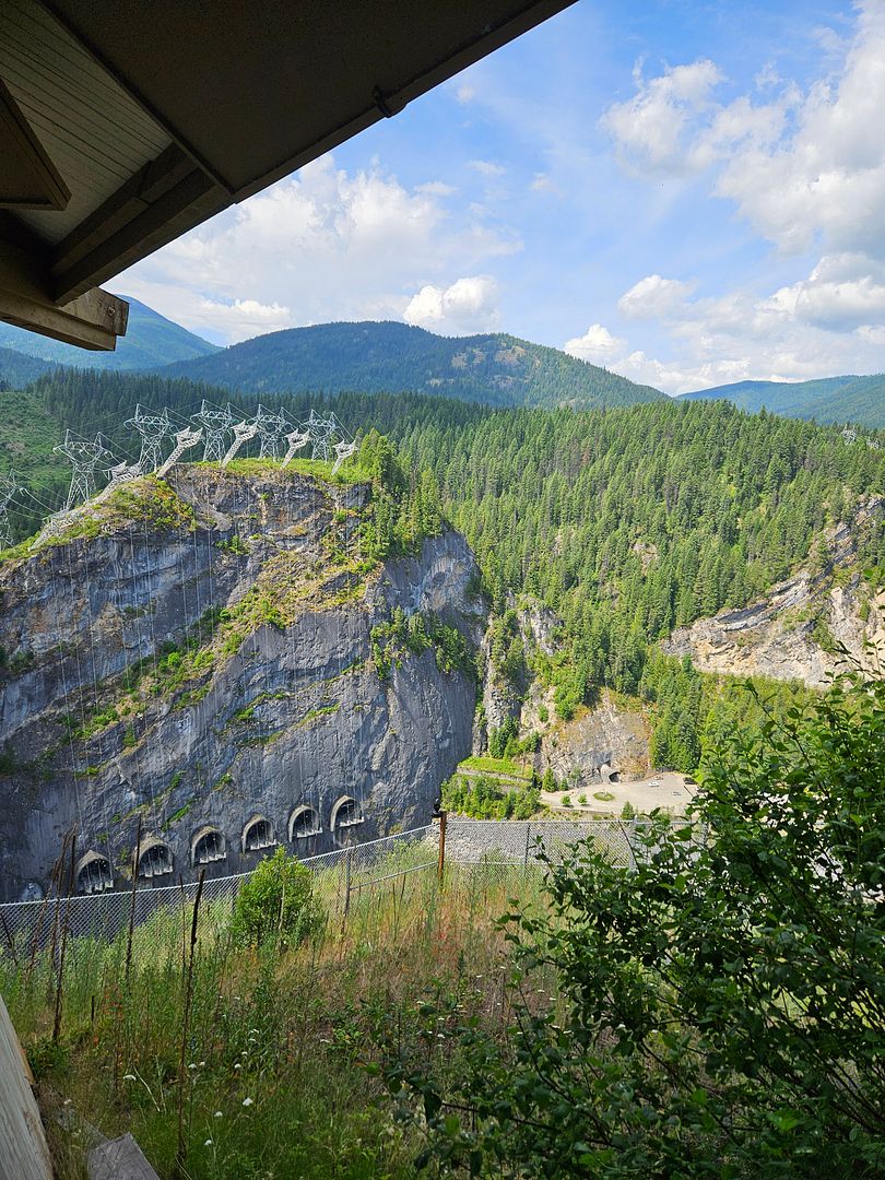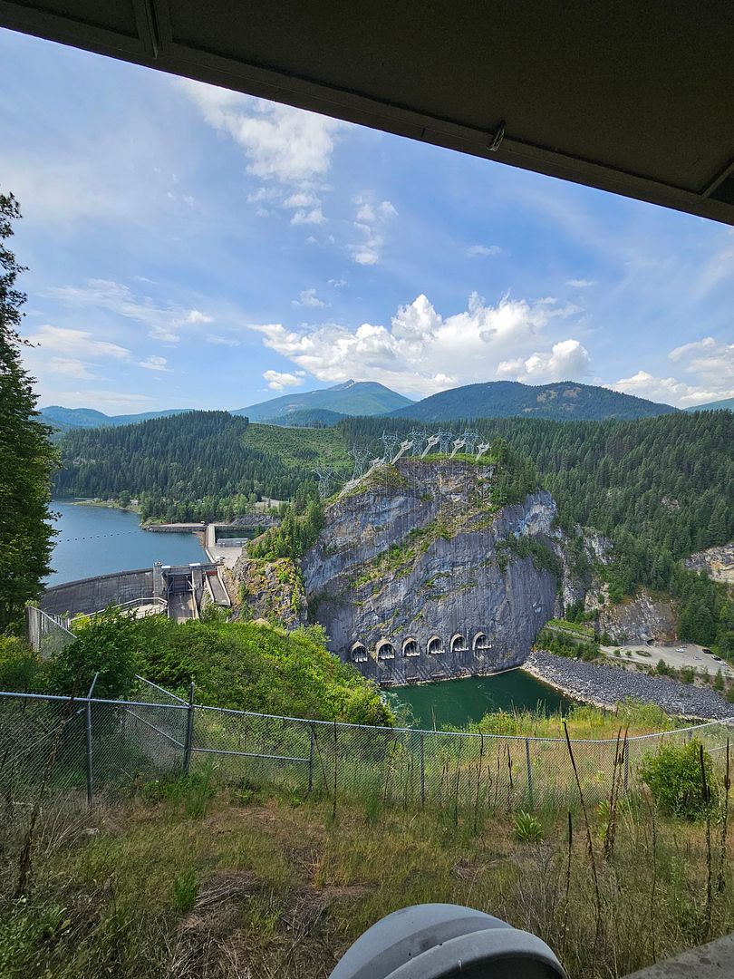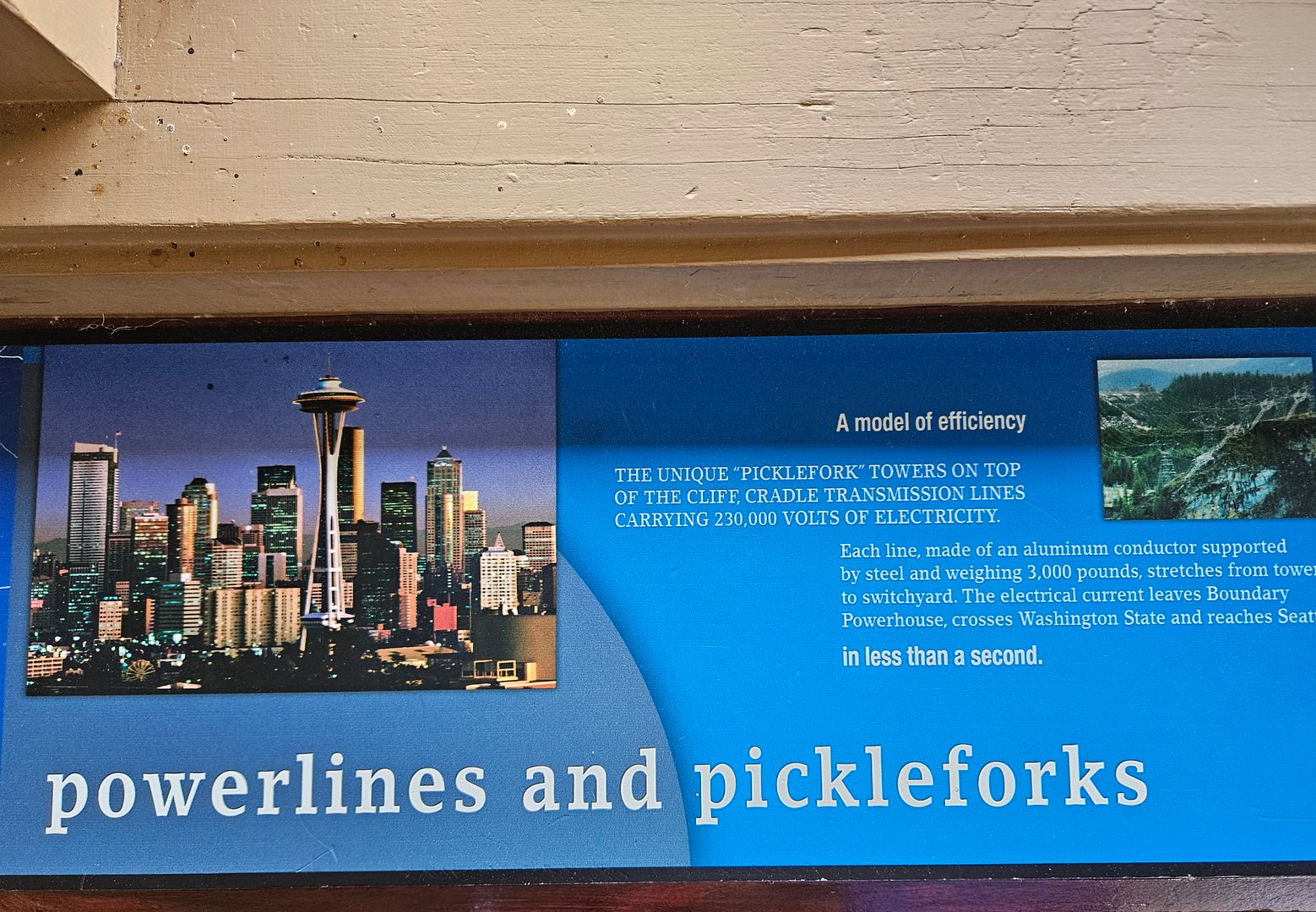 There was an indoor viewing house with windows all around and some great information posted. We were surprised to learn that Seattle City Light owns and operates the dam that is 390 miles from the city of Seattle. What surprised us even more is the fact that the electrical current leaves Boundary Powerhouse crosses Washington State and reaches Seattle IN LESS THAN A SECOND!