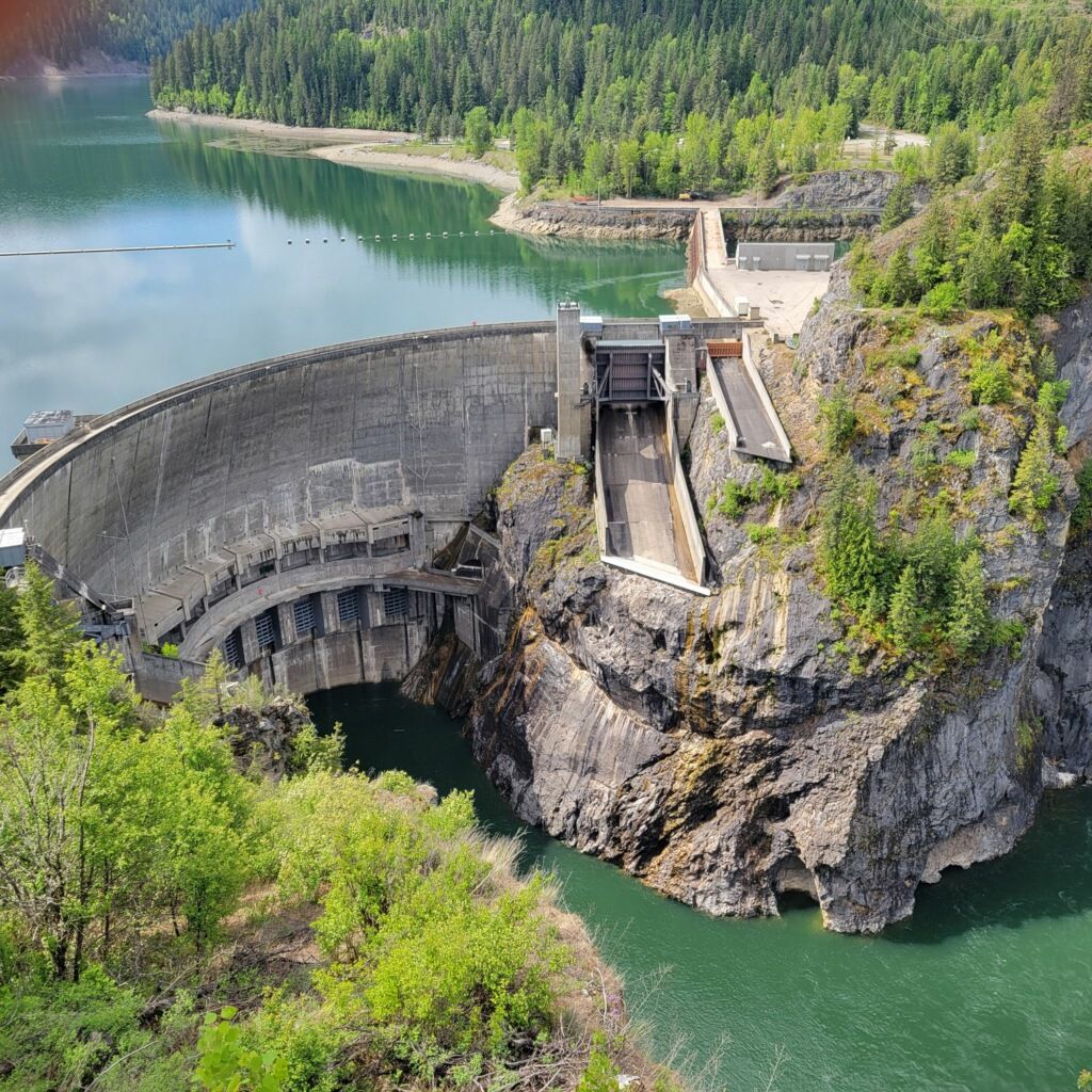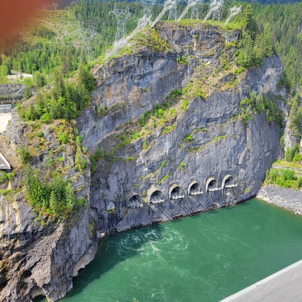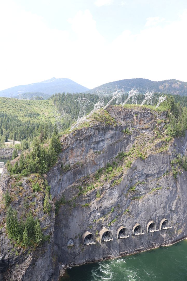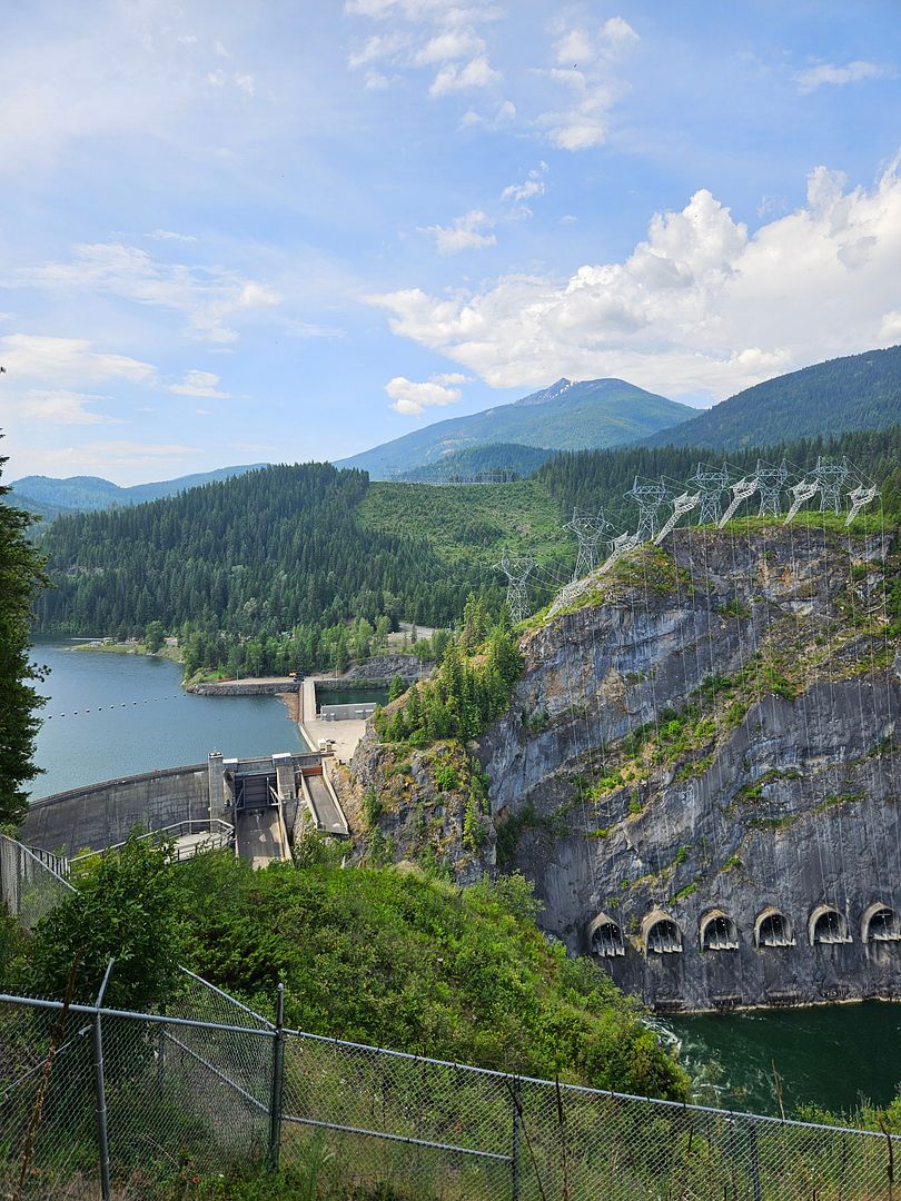 There was an indoor viewing house with windows all around and some great information posted. We were surprised to learn that Seattle City Light owns and operates the dam that is 390 miles from the city of Seattle. What surprised us even more is the fact that the electrical current leaves Boundary Powerhouse crosses Washington State and reaches Seattle IN LESS THAN A SECOND!