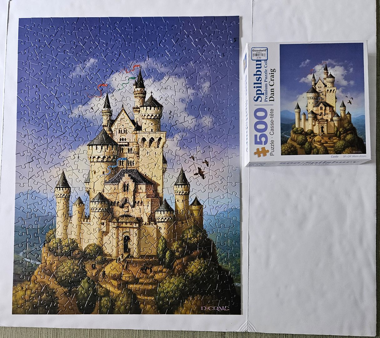 Speaking of castles, this is one of the latest puzzles I completed and it is going straight to the garage sale pile. I love the result but the pieces were all cut into shapes that were too varied and too brain teasing. I bought it for $3.99 at Goodwill and was happy that there were no missing pieces. Hooray.